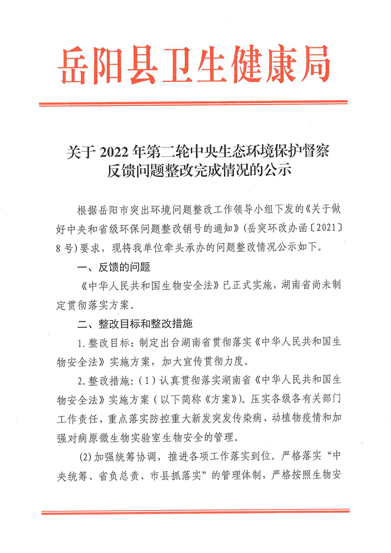 2022年第二輪中央生態環境保護督察反饋問題整改完成情況的公示