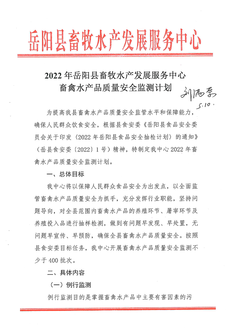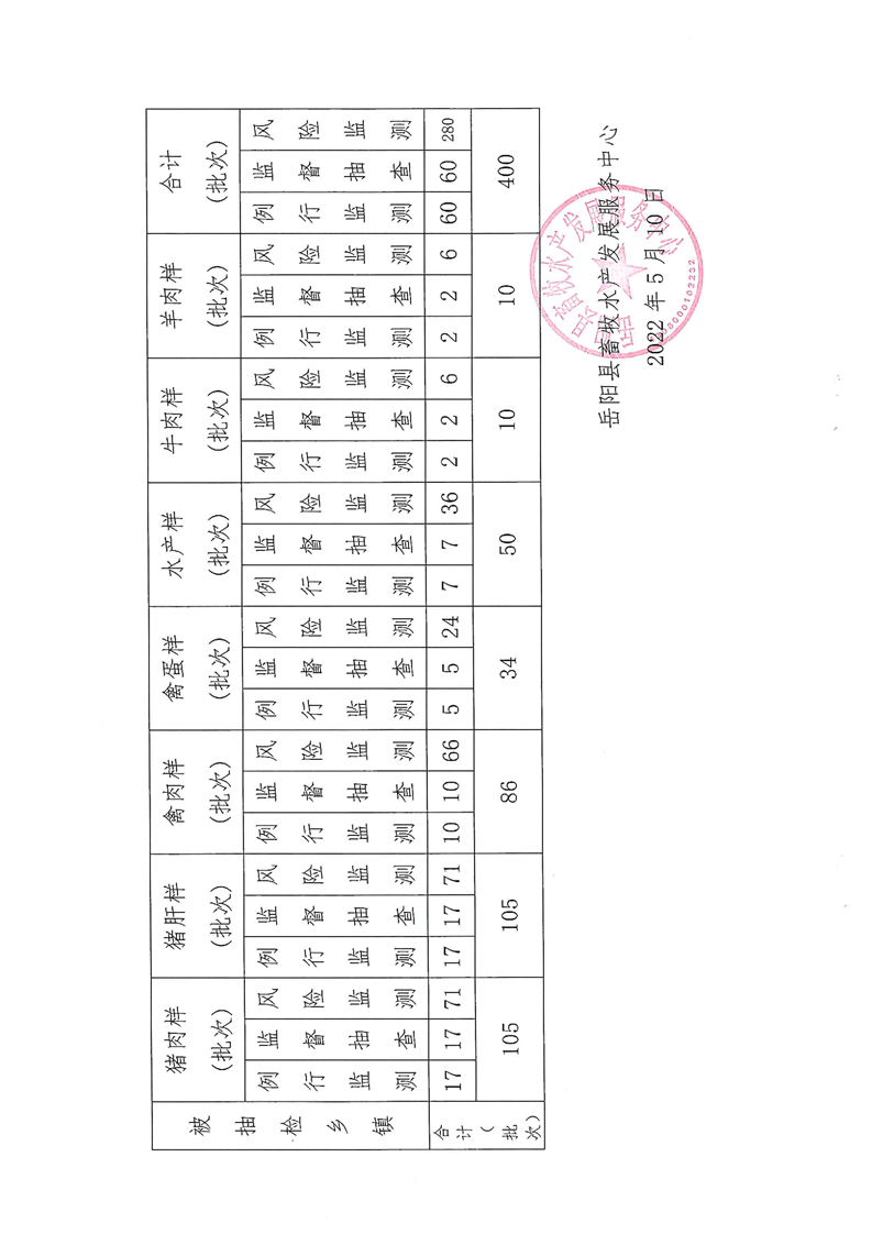 2022年嶽陽縣畜牧水產發展服務中心畜禽水產品質量安全監測計劃