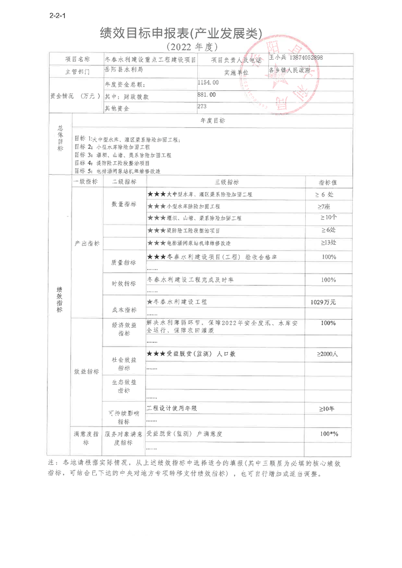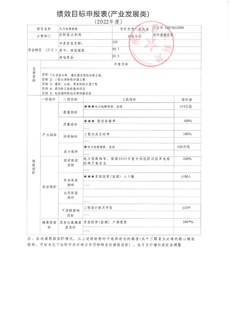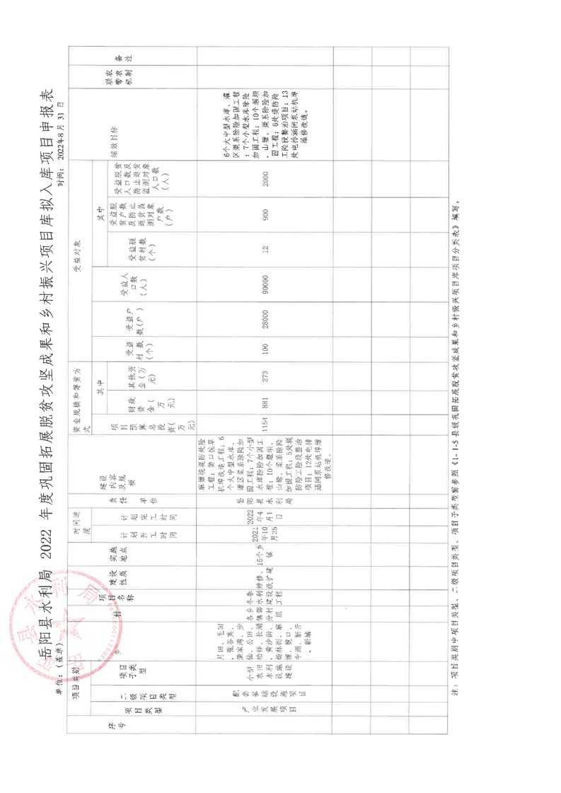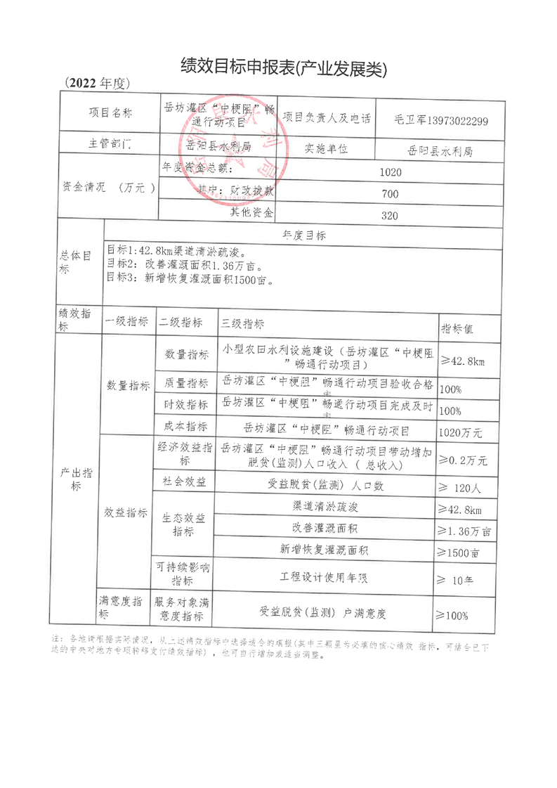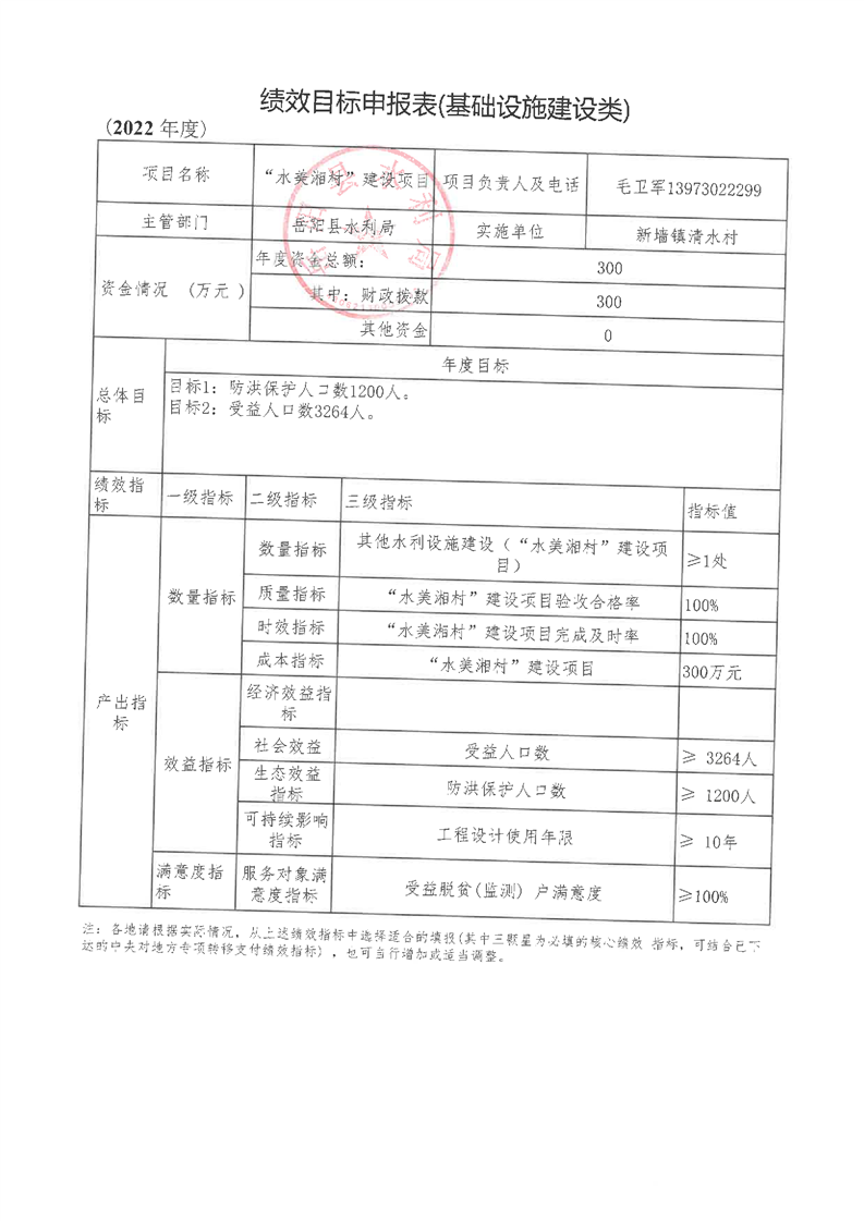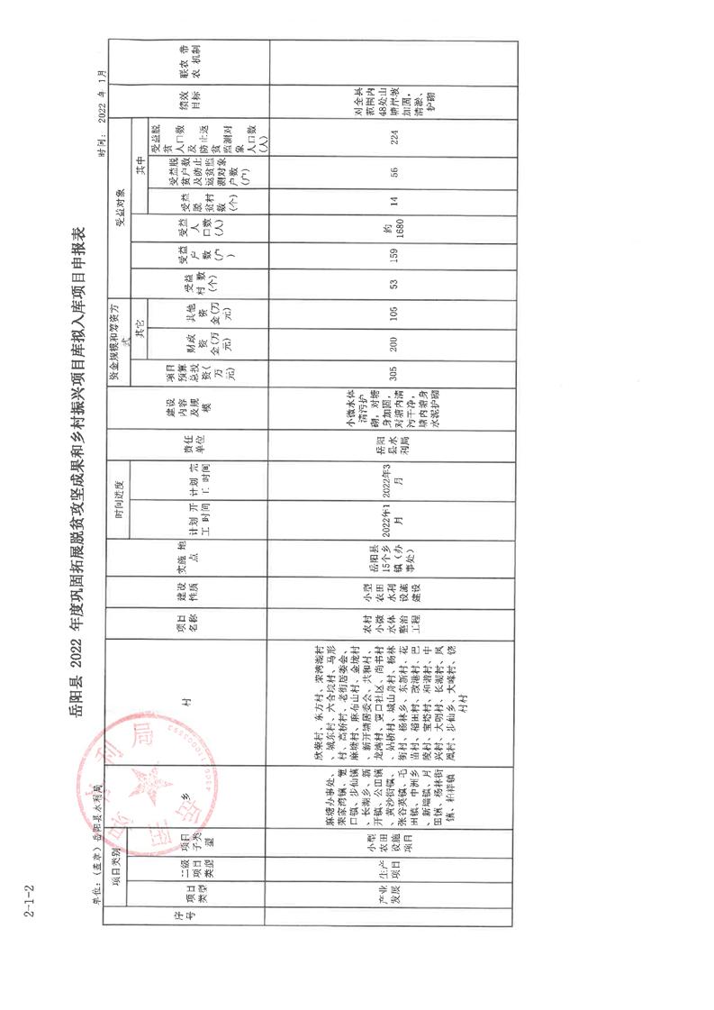 嶽陽縣水利局2022年鄉村振興銜接資金項目入庫申報表及績效目標申報表