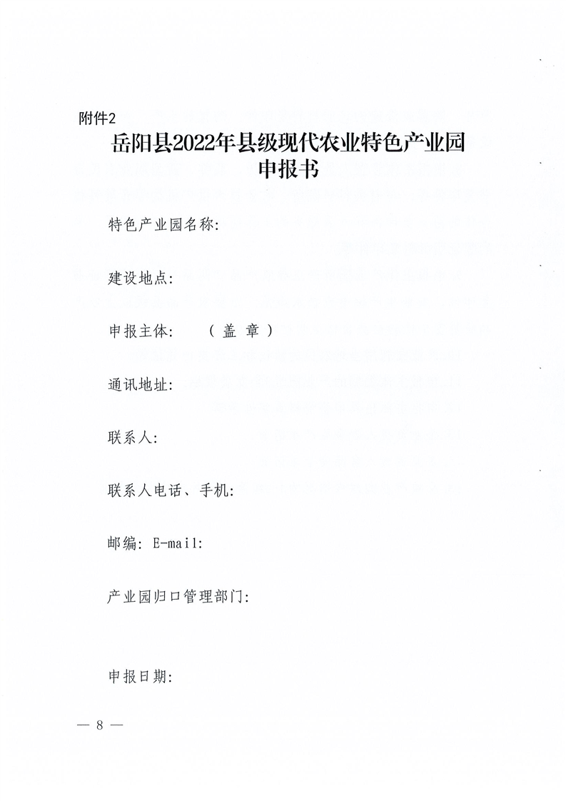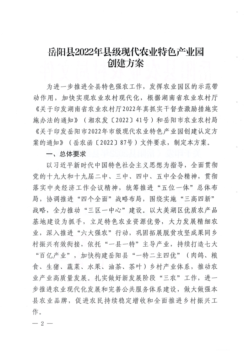 嶽陽縣2022年縣級現代農業特色產業園創建方案