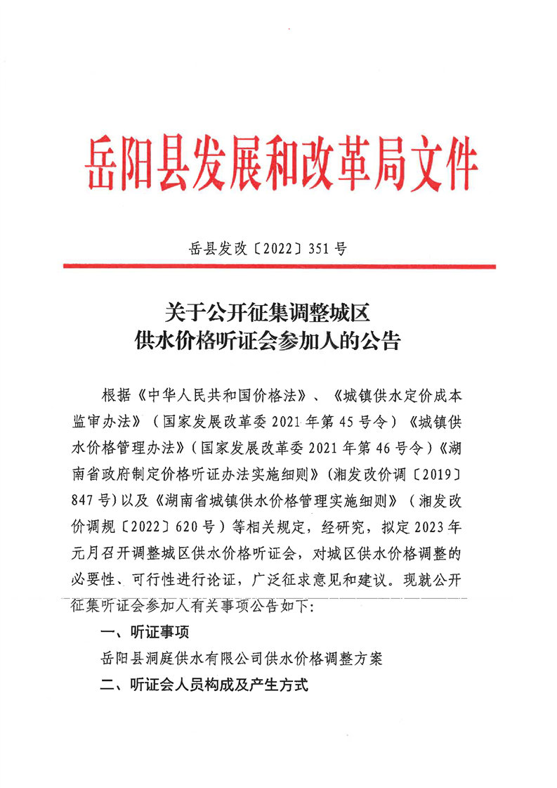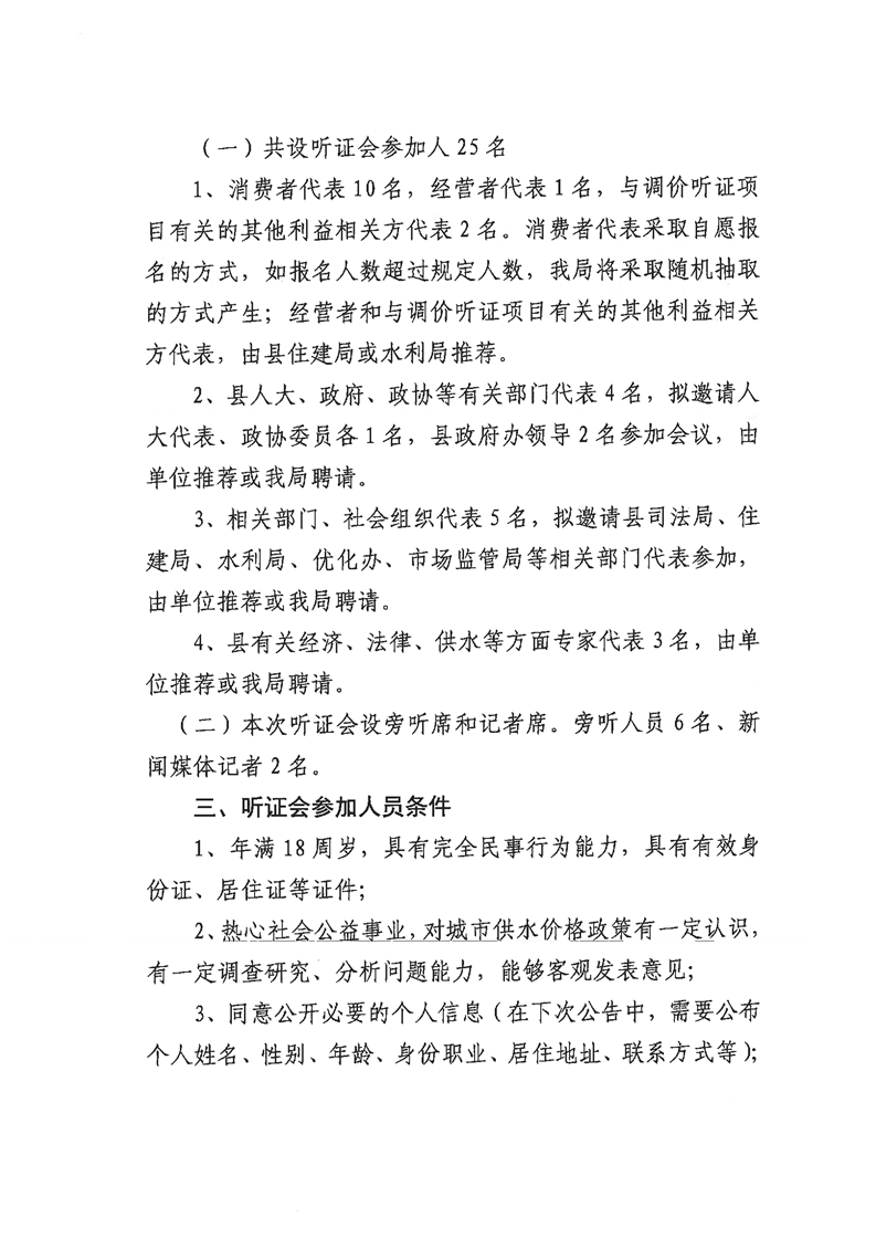 關於公開征集調整城區供水價格聽證會參加人的公告
