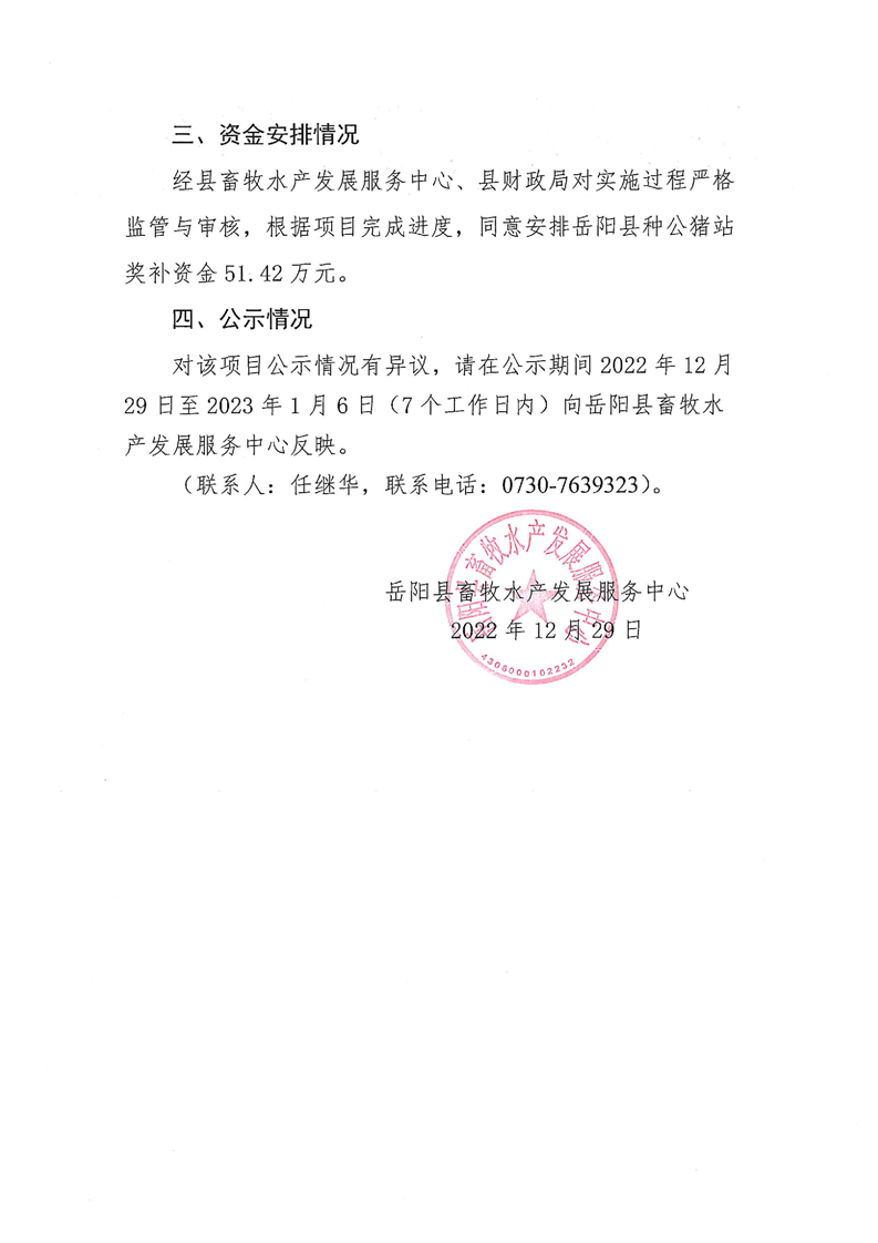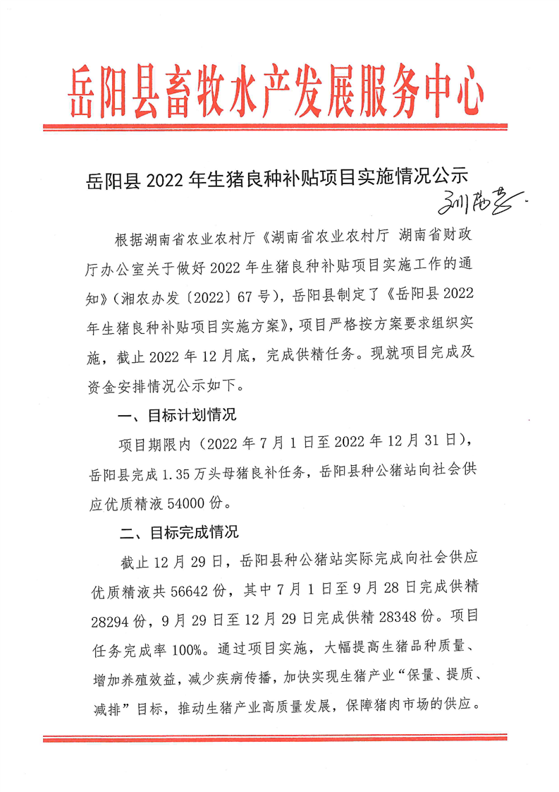 嶽陽縣2022年生豬良種補貼項目實施情況公示(12.29)