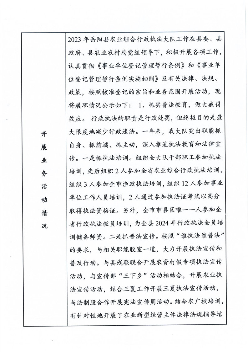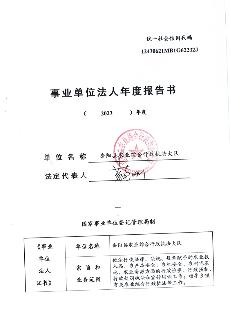 嶽陽縣農業綜合行政執法大隊法人年度報告書