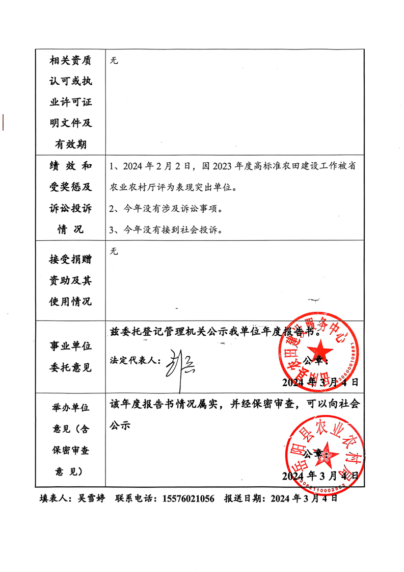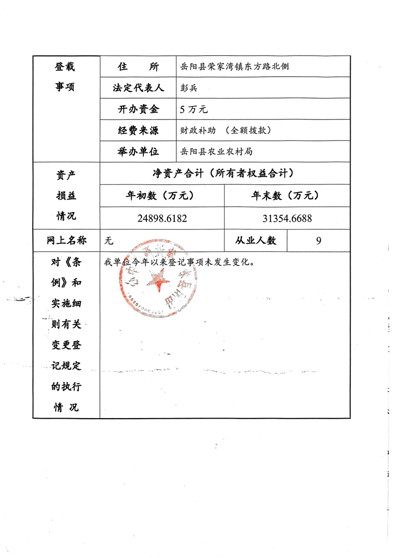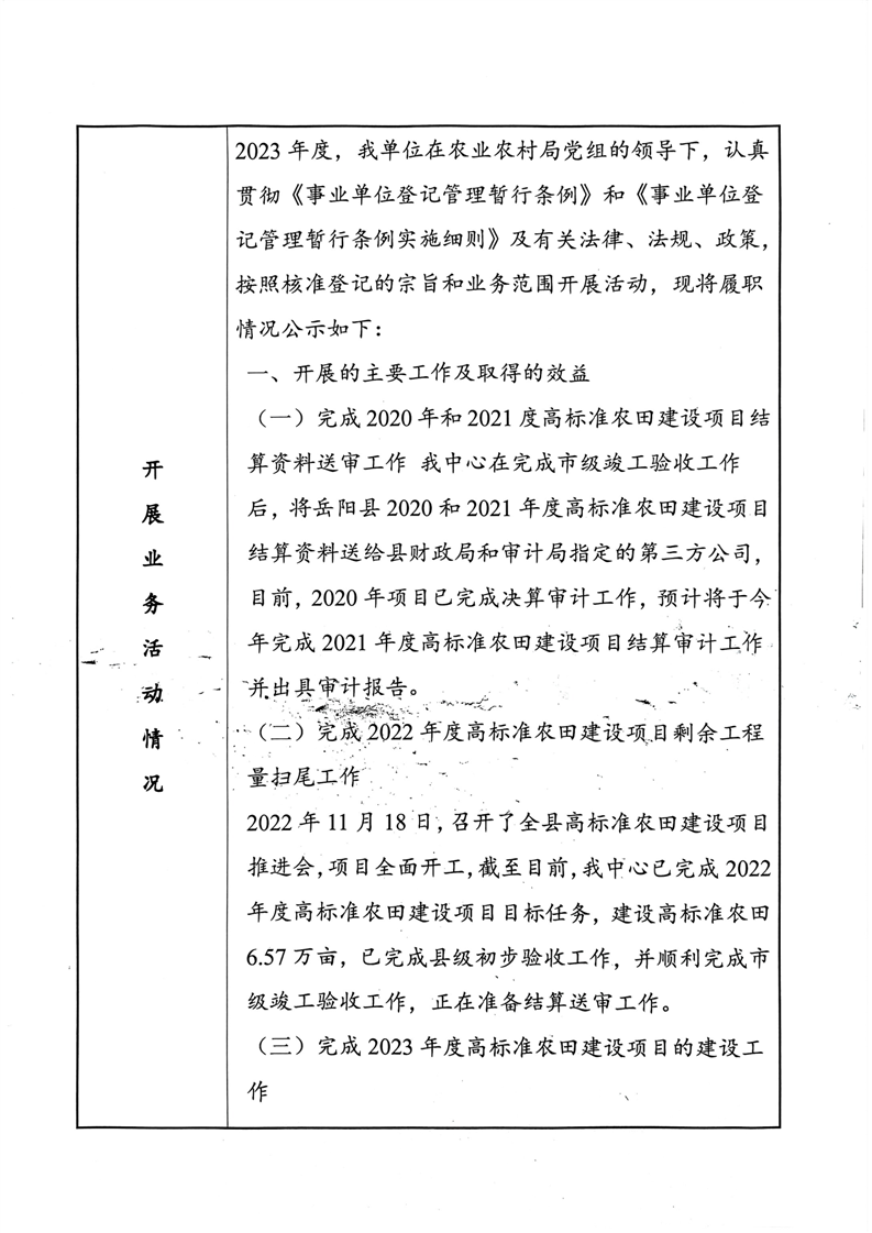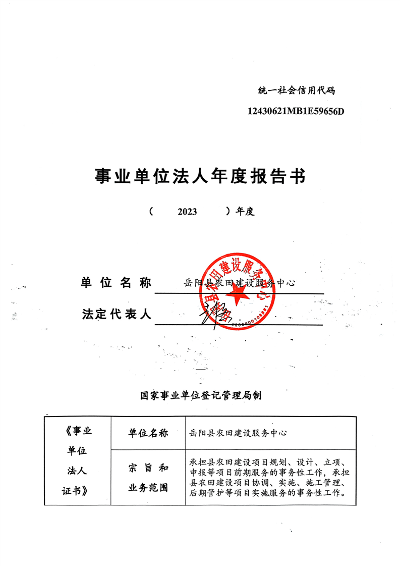 嶽陽縣農田建設服務中心法人年度報告書