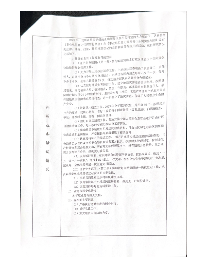 嶽陽縣自然資源局東洞庭湖自然資源所事業單位法人年度報告書
