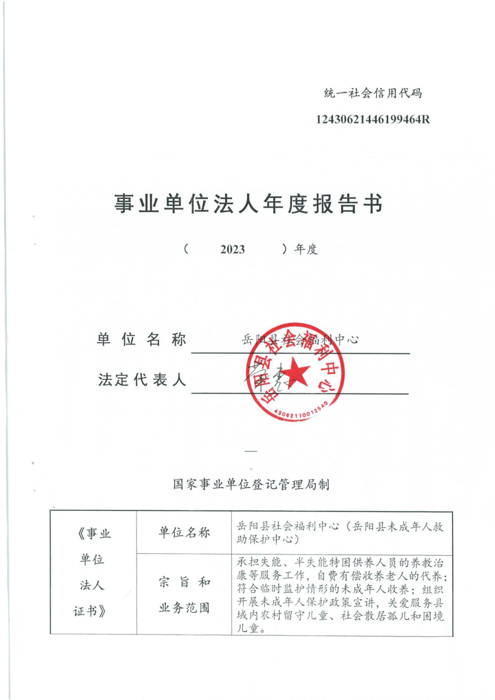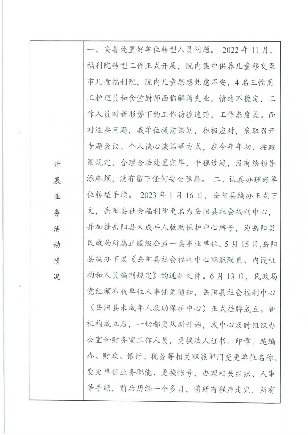 嶽陽縣社會福利中心2023年度報告書