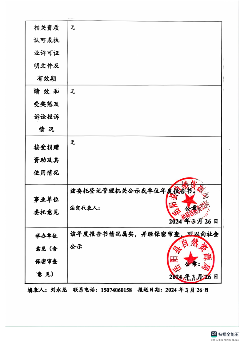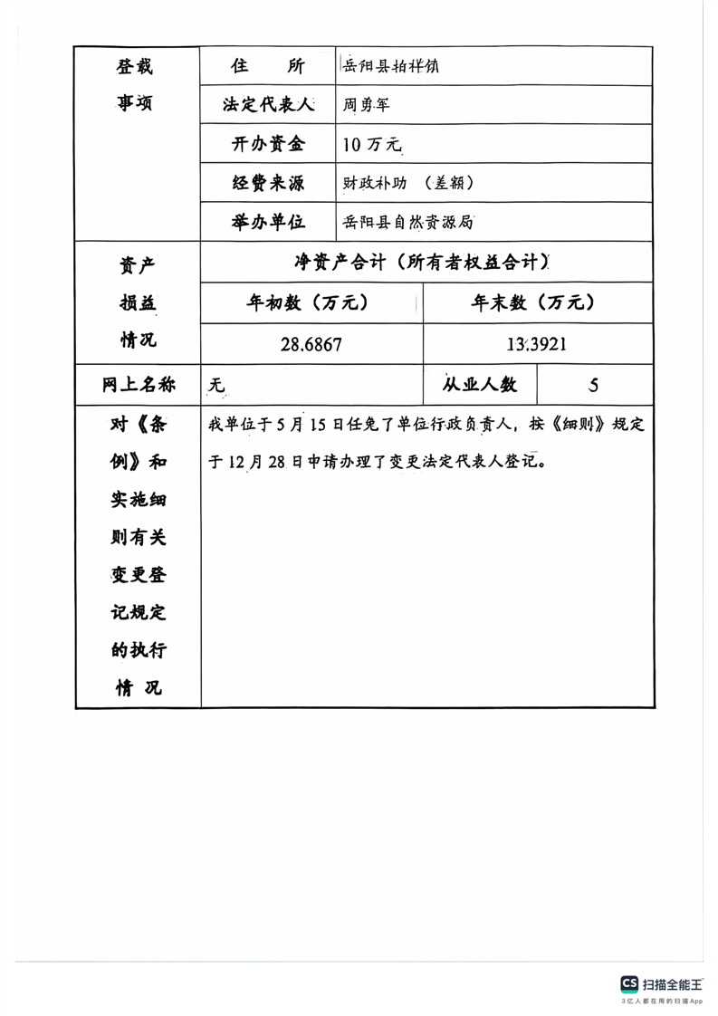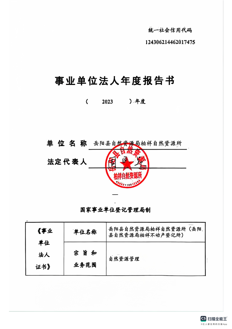 嶽陽縣自然資源局柏祥自然資源所事業單位法人年度報告書