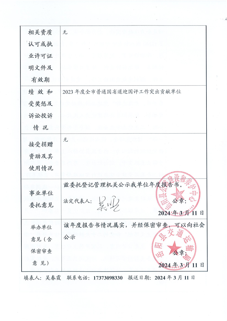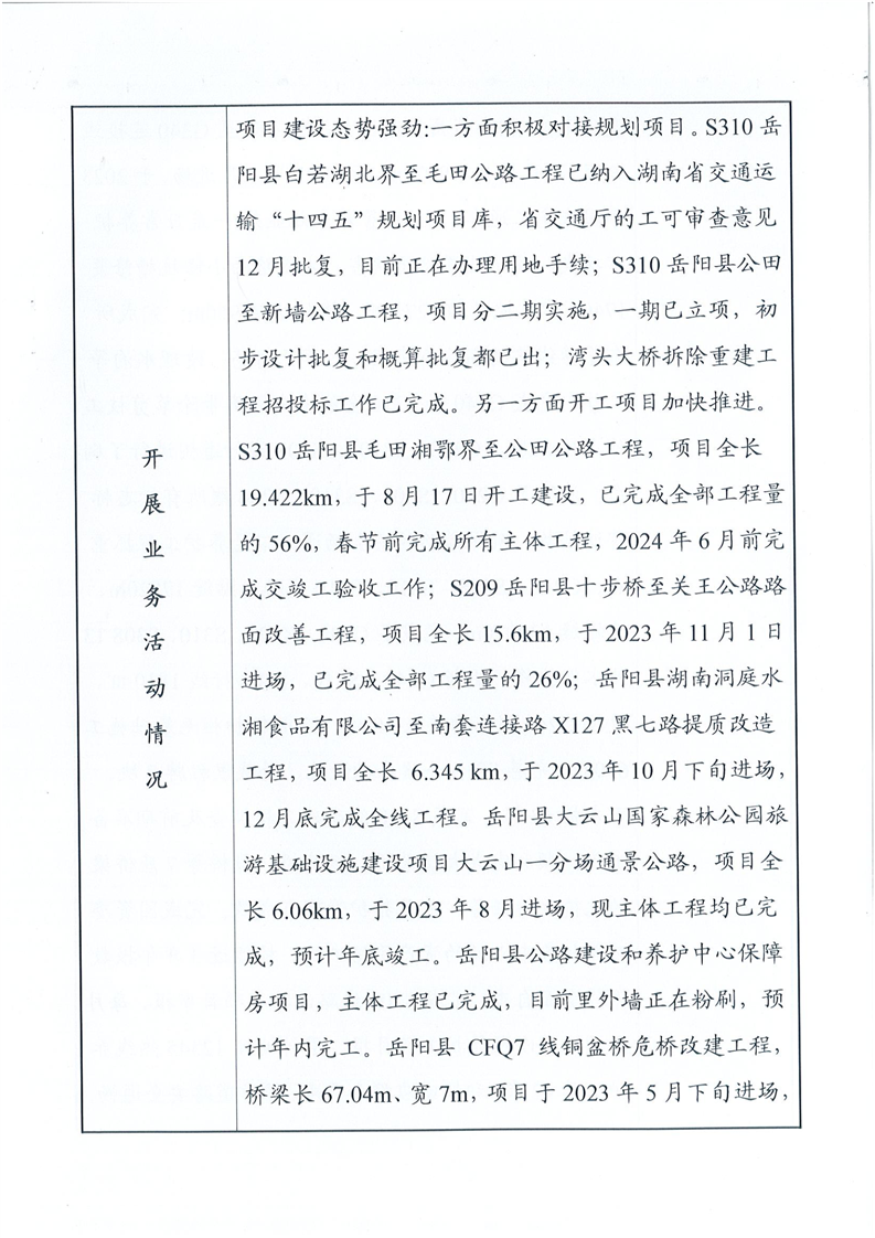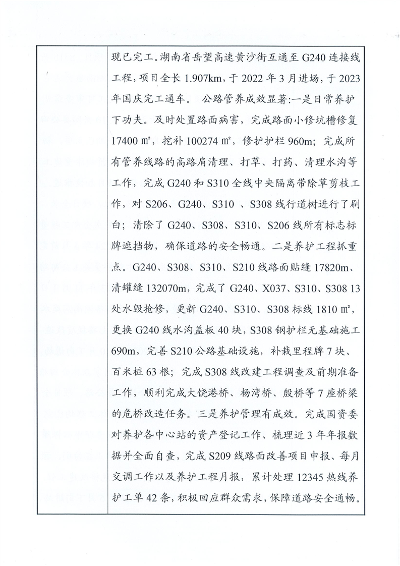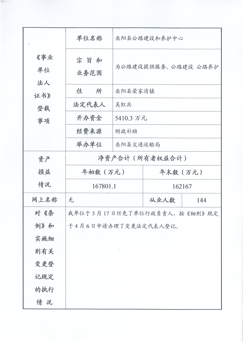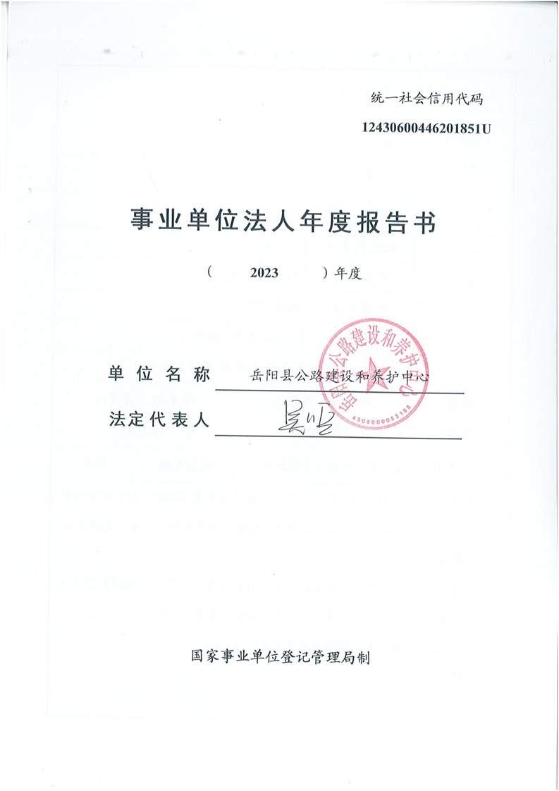 嶽陽縣公路建養和養護中心2023年度事業單位法人年度報告書