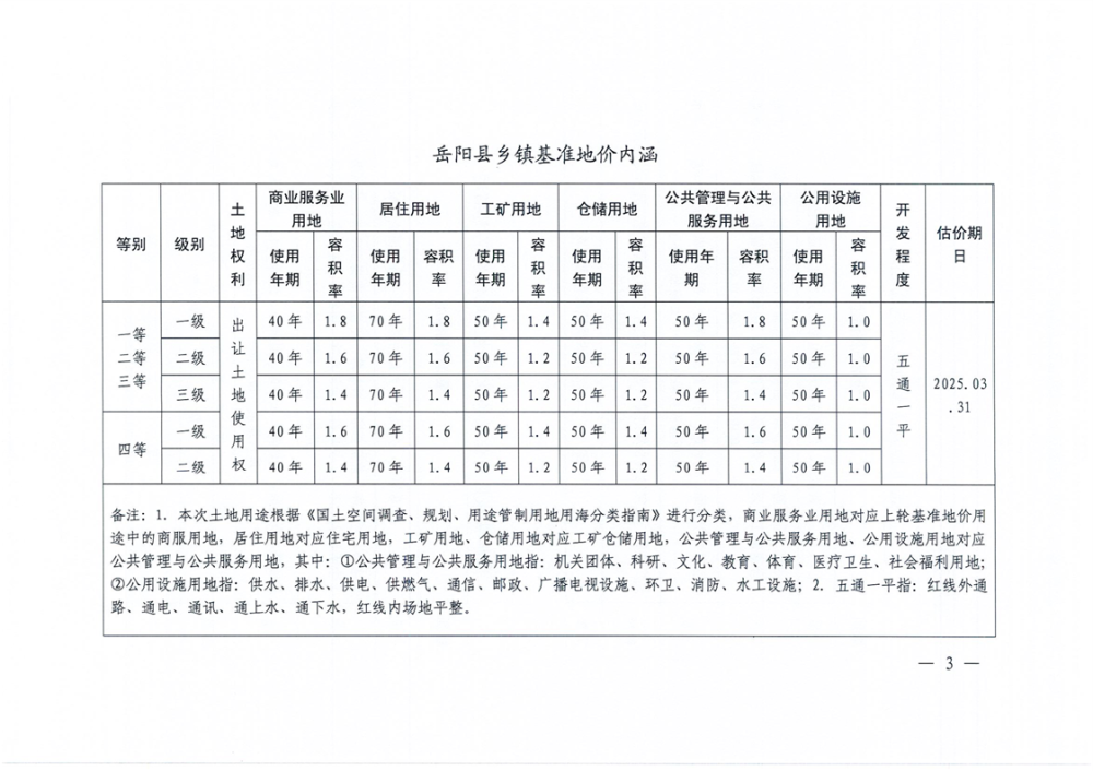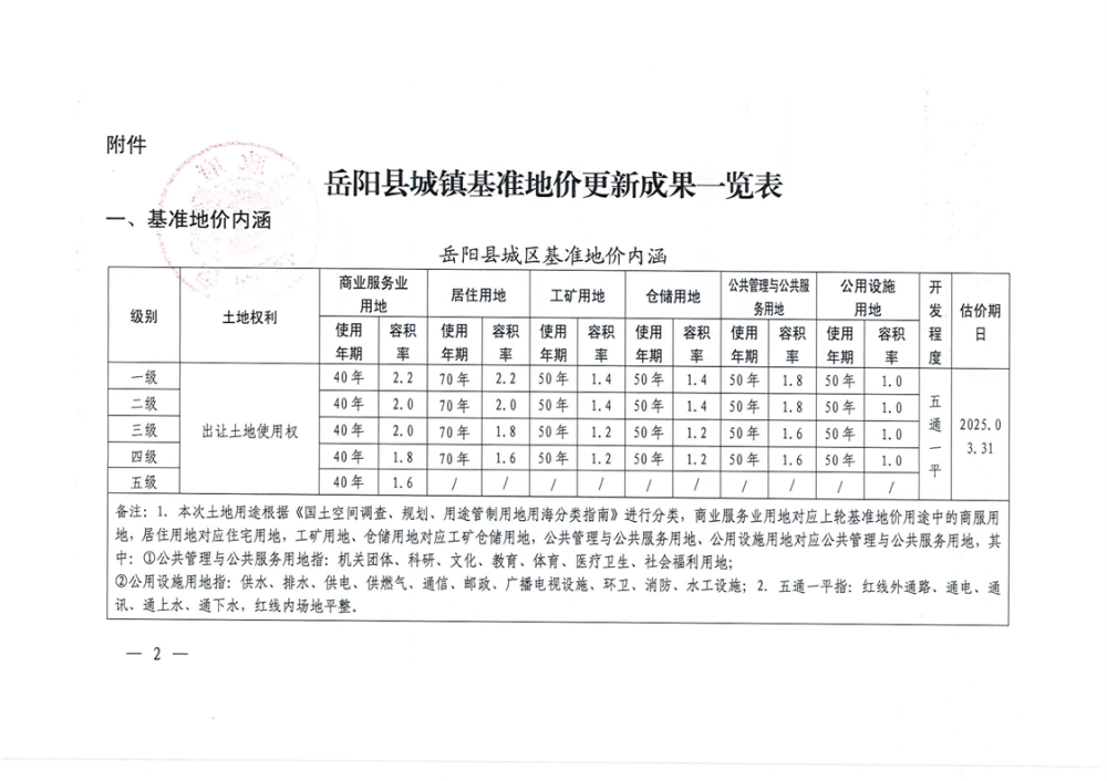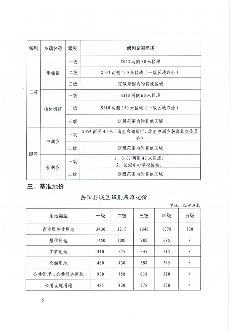 2025年嶽陽縣人民政府關於公布實施嶽陽縣城鎮基準地價更新成果的通知