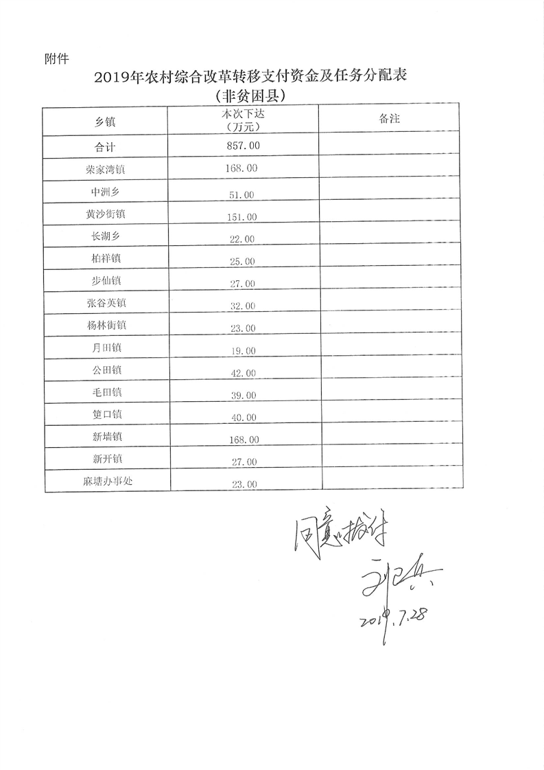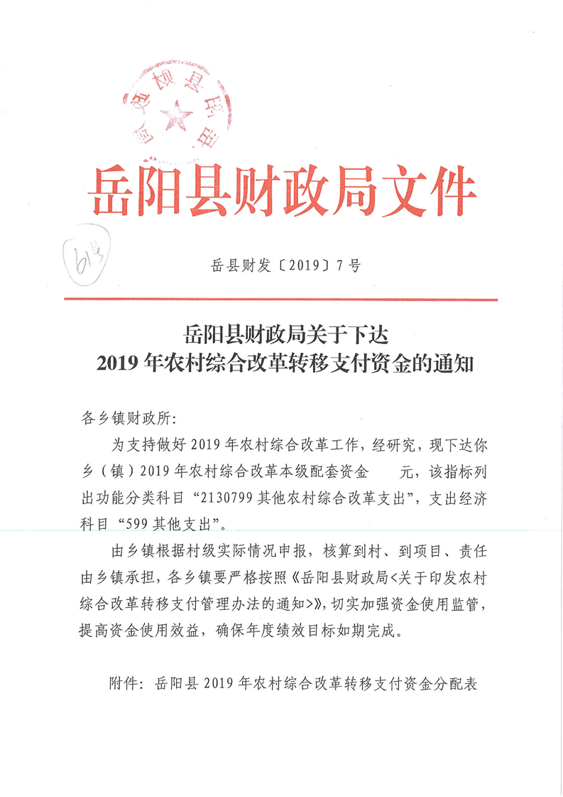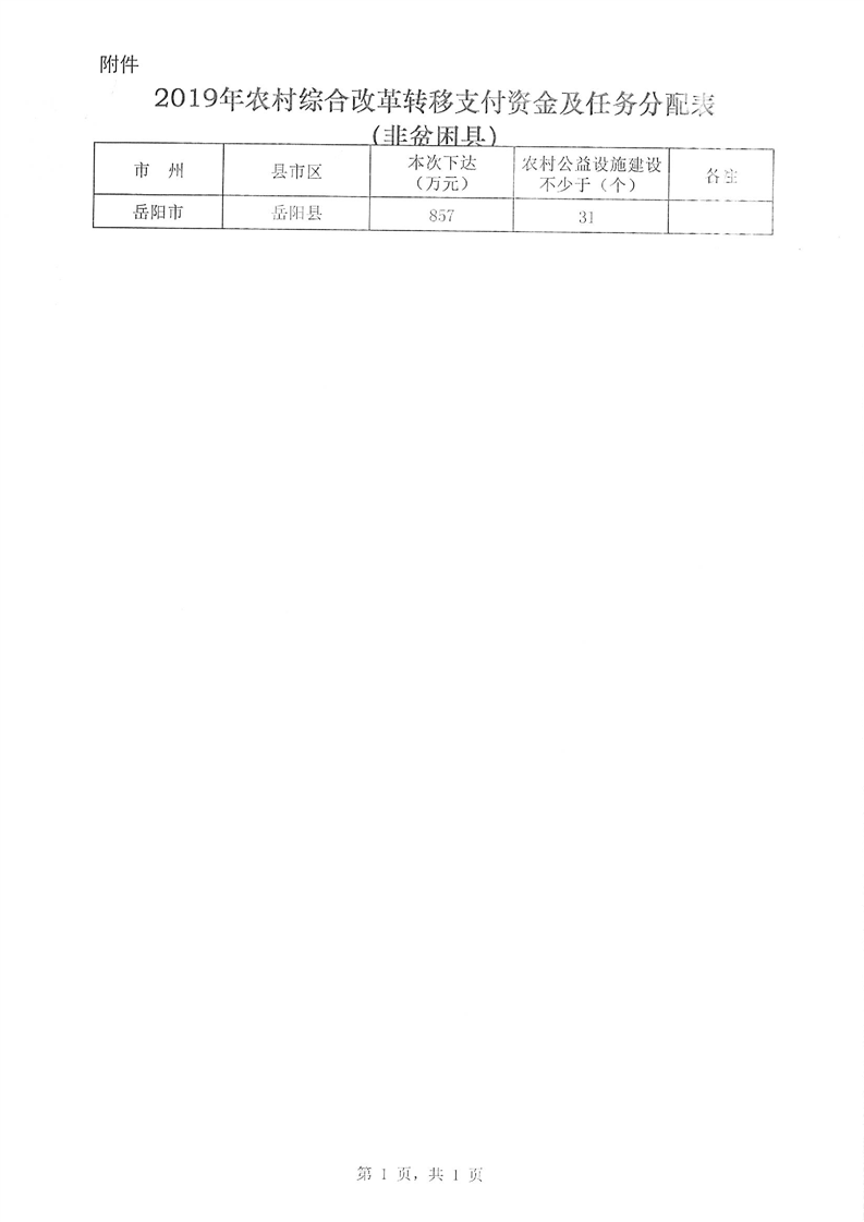 2019年第二批農村綜合改革轉移支付資金公開