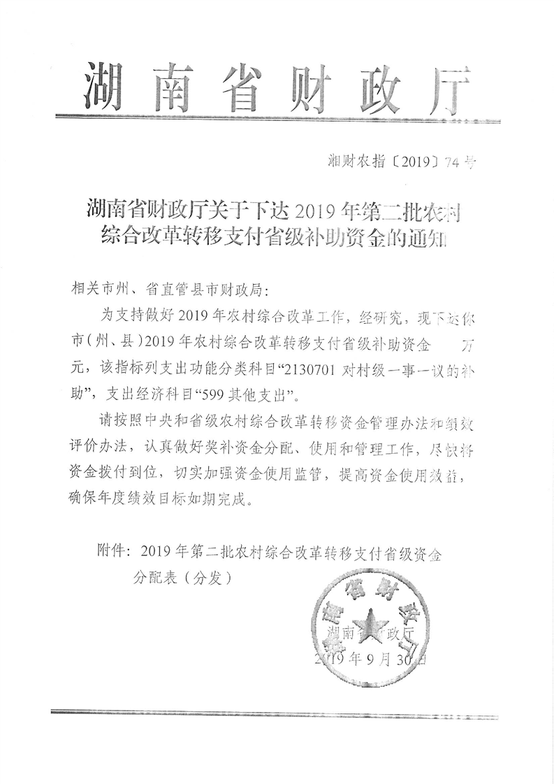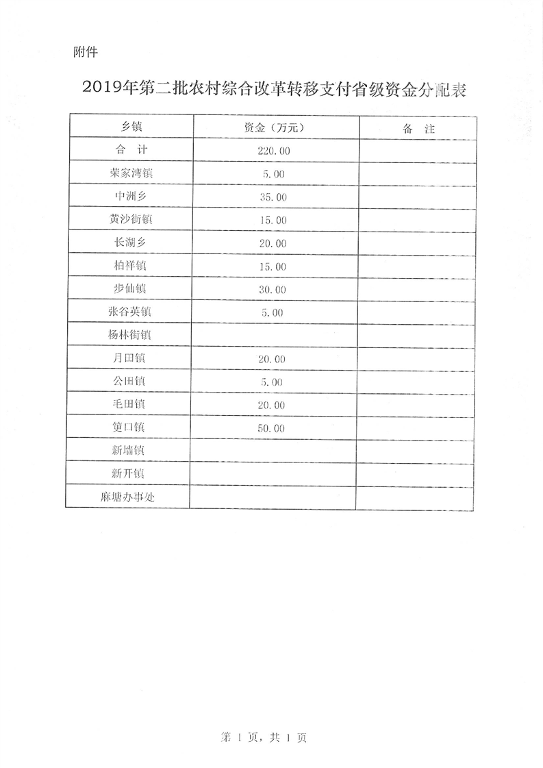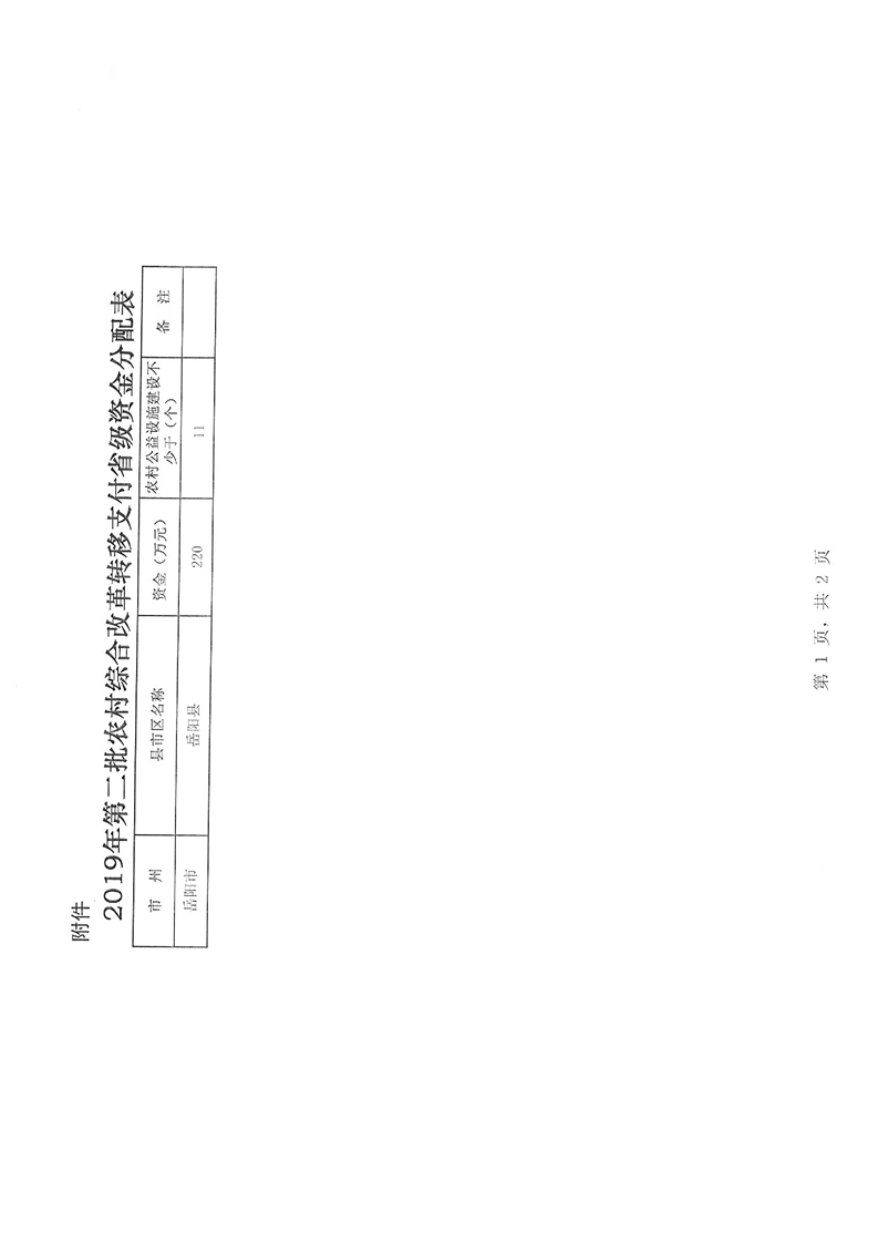 2019年第二批農村綜合改革轉移支付省級補助資金公開