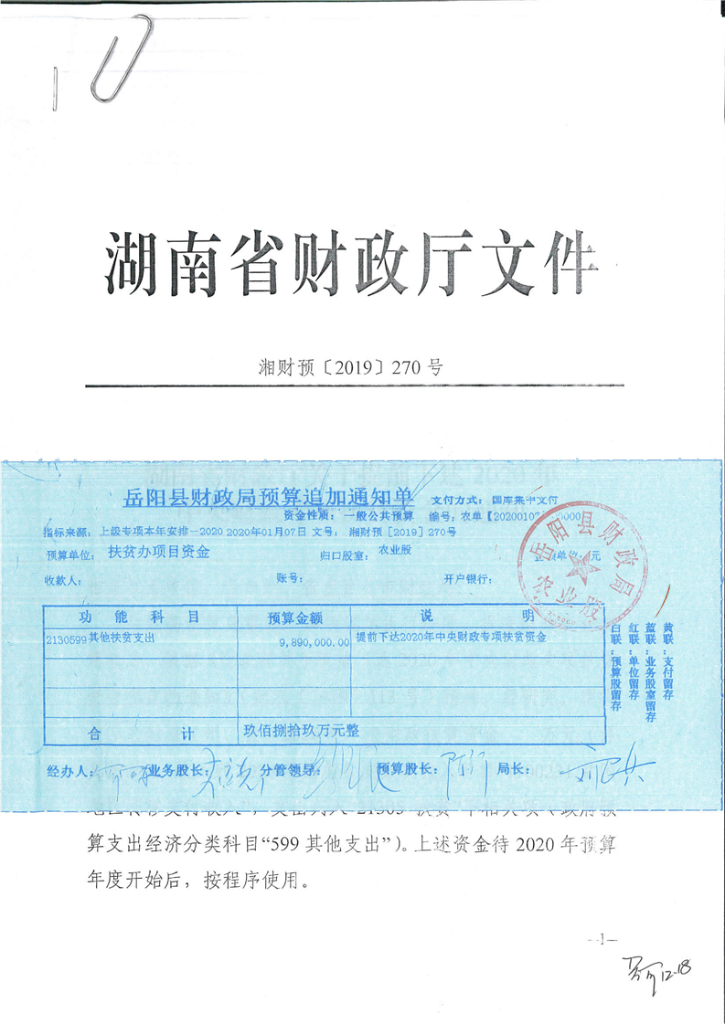 嶽陽縣下達2020年中央財政專項扶貧資金公開公示(二)