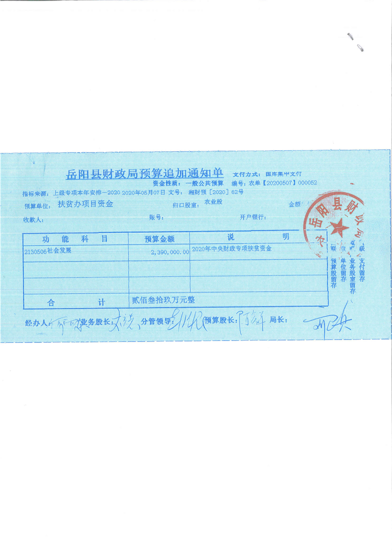 嶽陽縣下達2020年中央財政專項扶貧資金公開(七)