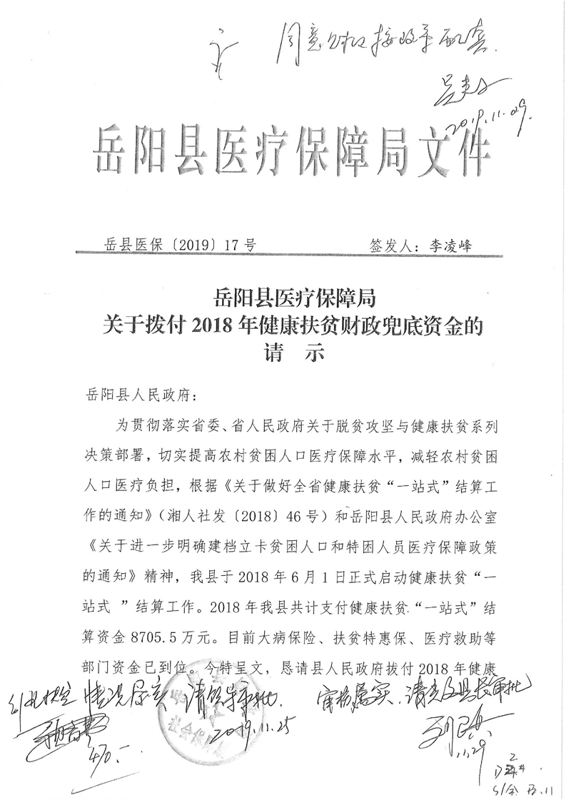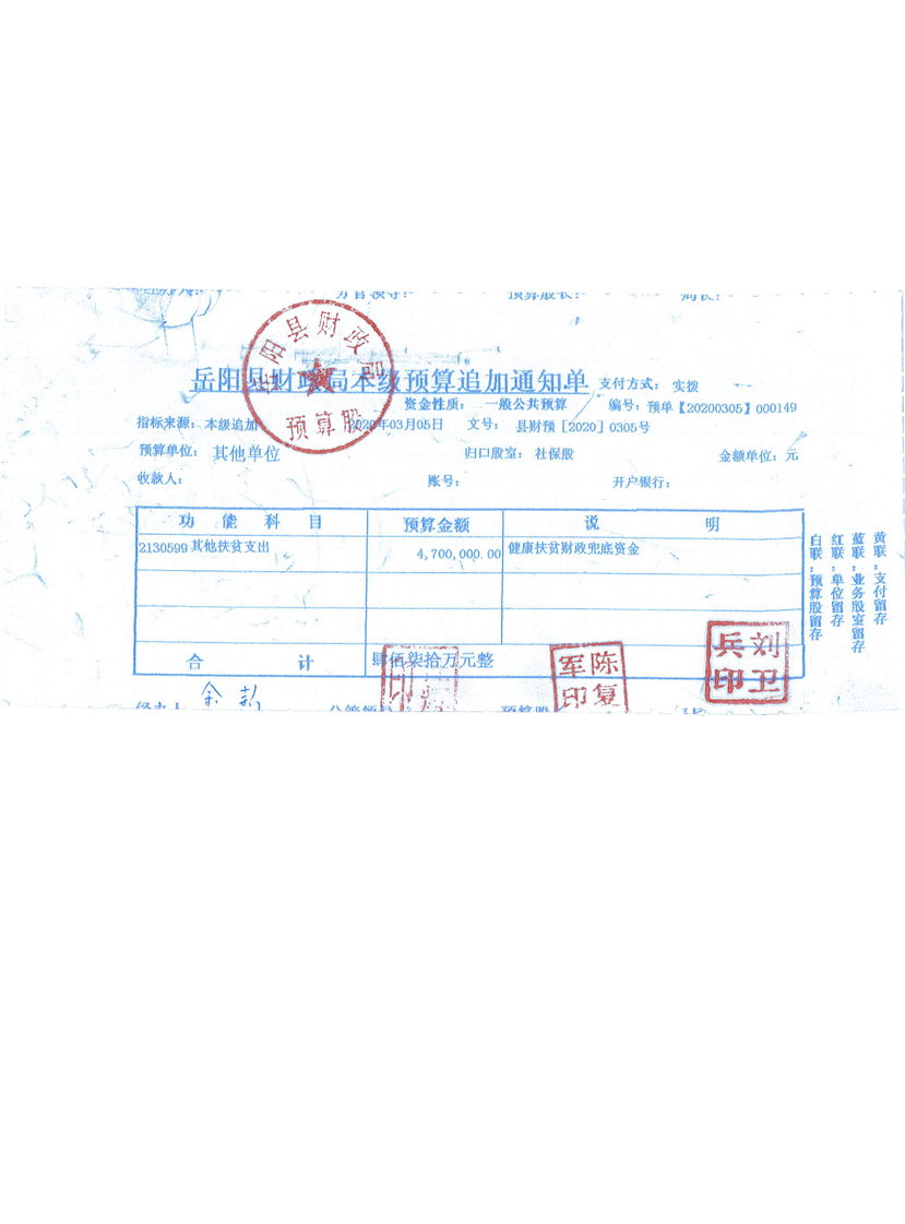 嶽陽縣健康扶貧財政兜底資金