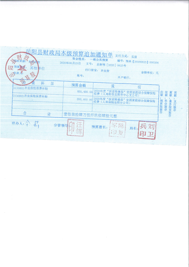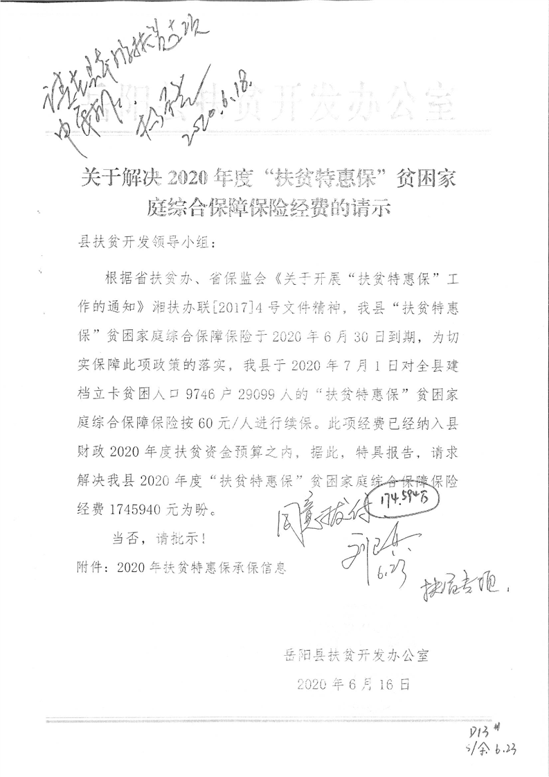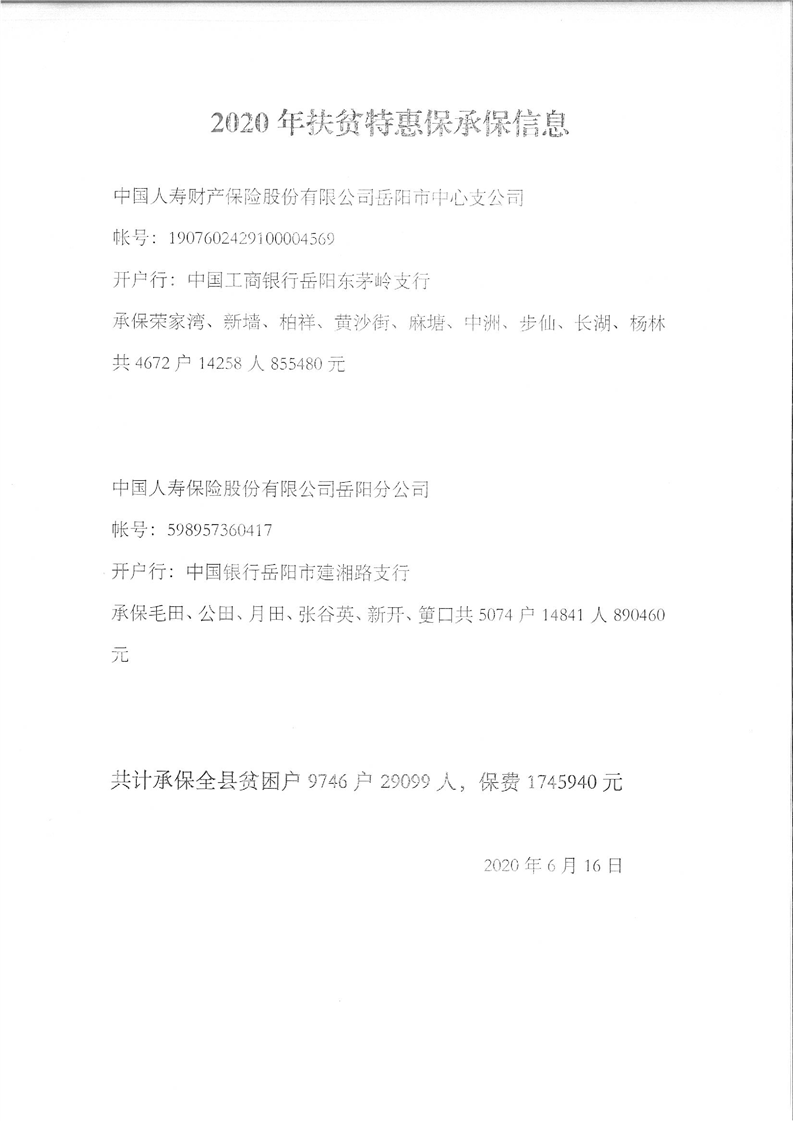 嶽陽縣下達2020年度“扶貧特惠保”貧困家庭綜合保障保險經費公開公示