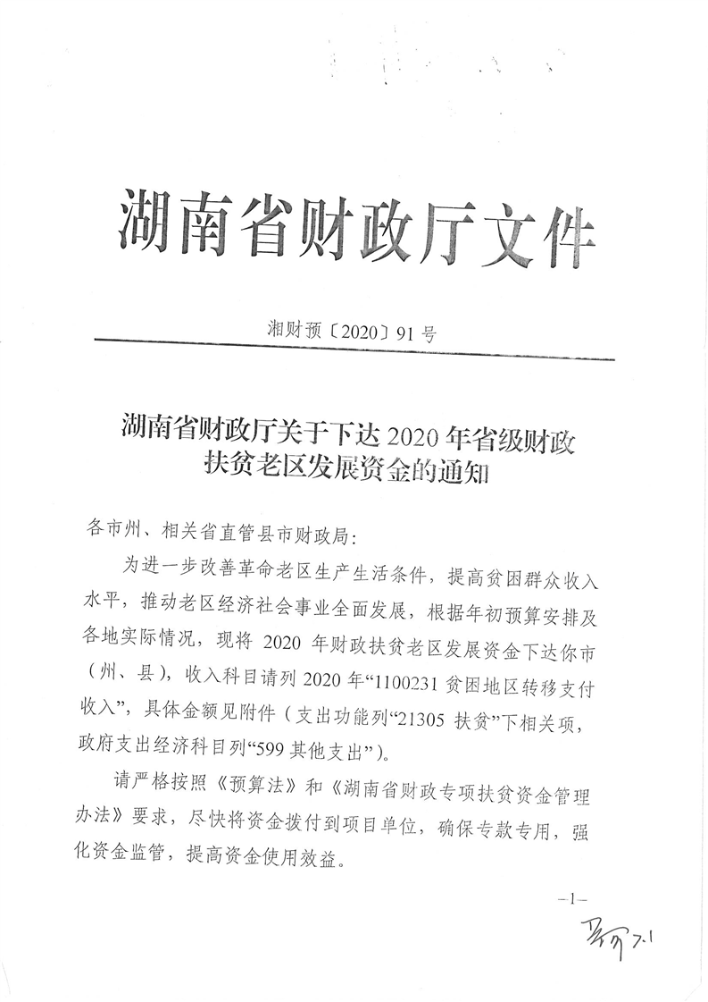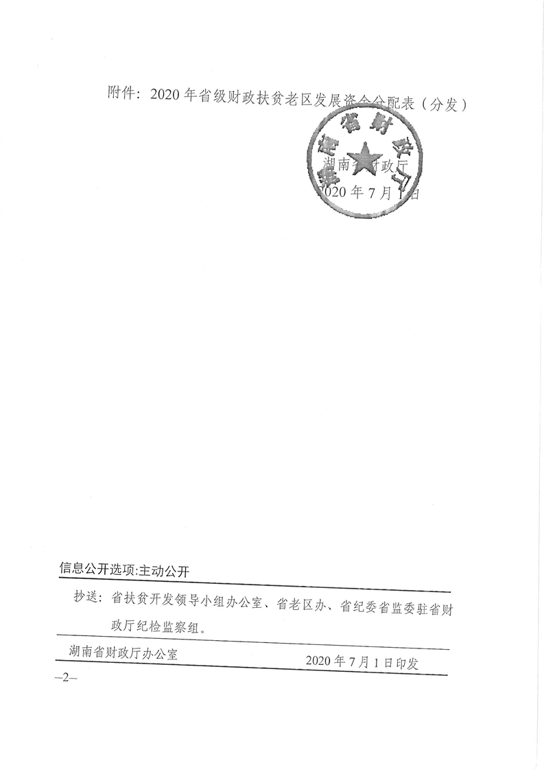 2020年省級財政扶貧老區發展資金公開公增(十一)