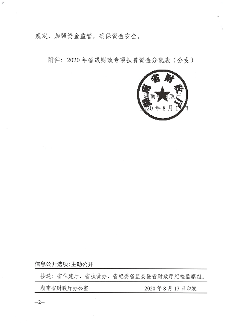 湖南省財政廳下達及調劑2020年省級財政專項扶貧資金公開公示(十二)