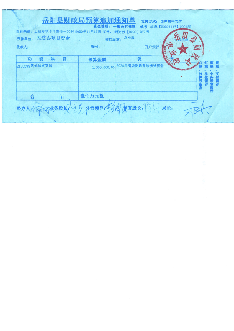嶽陽縣財政局下達2020年省級財政專項扶貧資金的公開公示