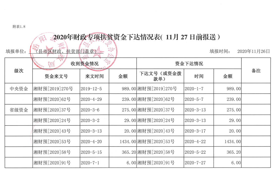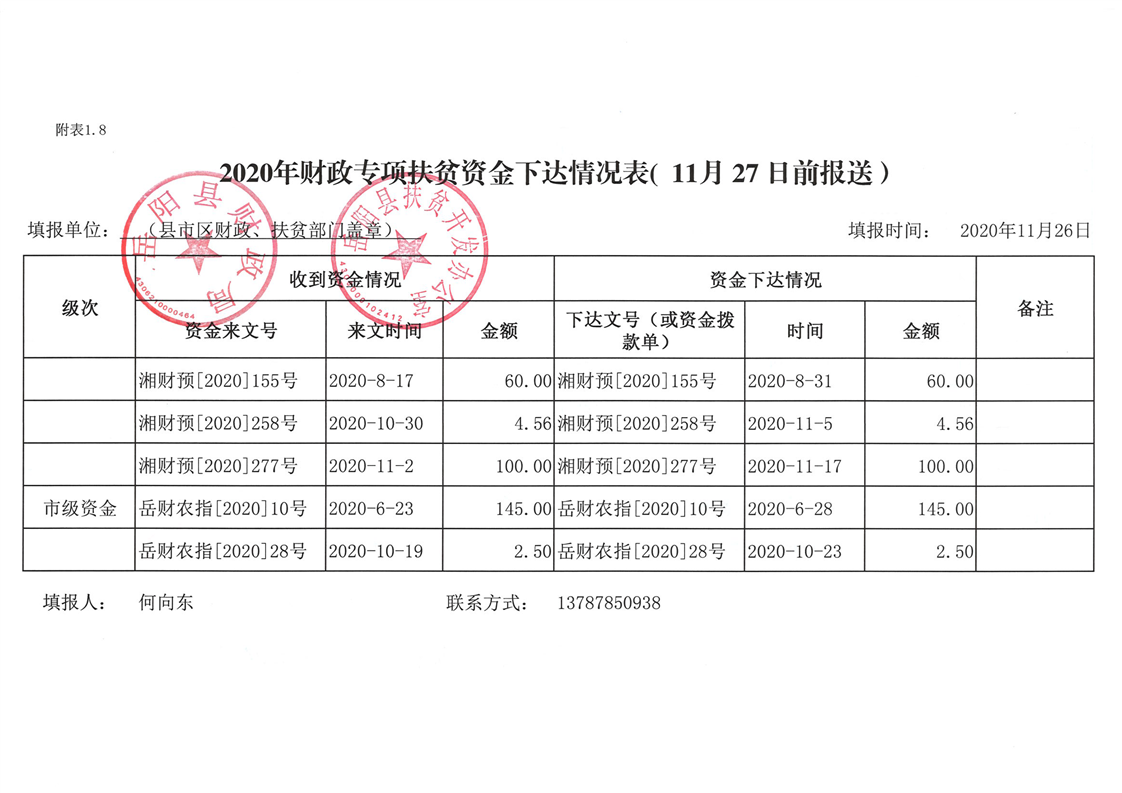 2020年度嶽陽縣財政局上級專項扶貧資金台賬