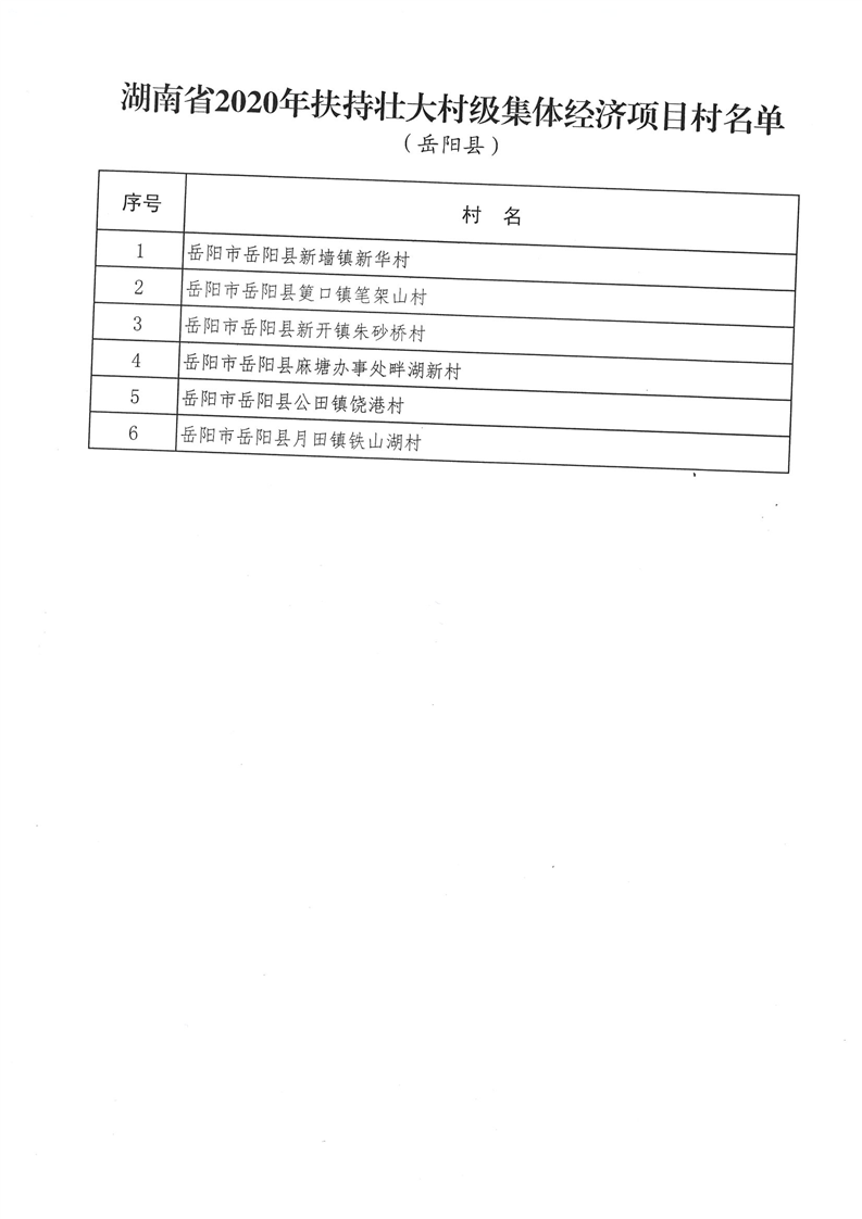 嶽陽縣財政局扶持壯大村集體經濟配套資金公開