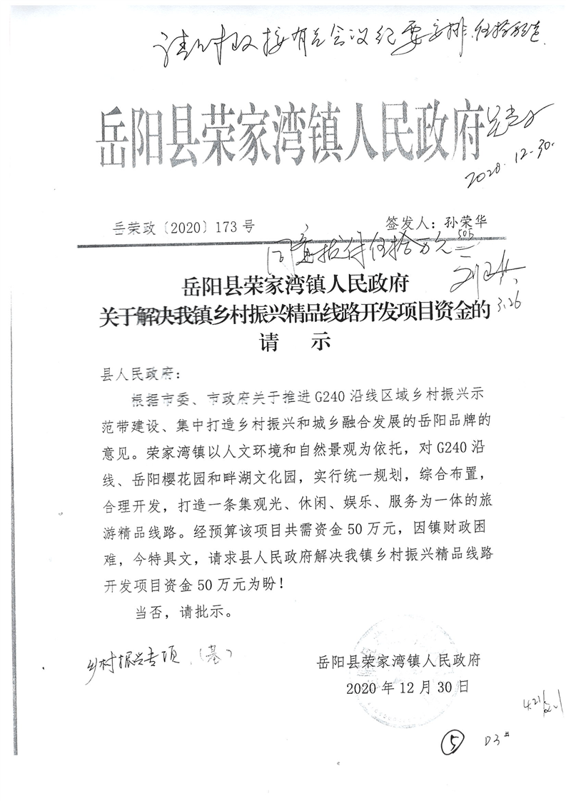 嶽陽縣下達榮家灣鎮鄉村振興精品線路開發項目資金公開公示