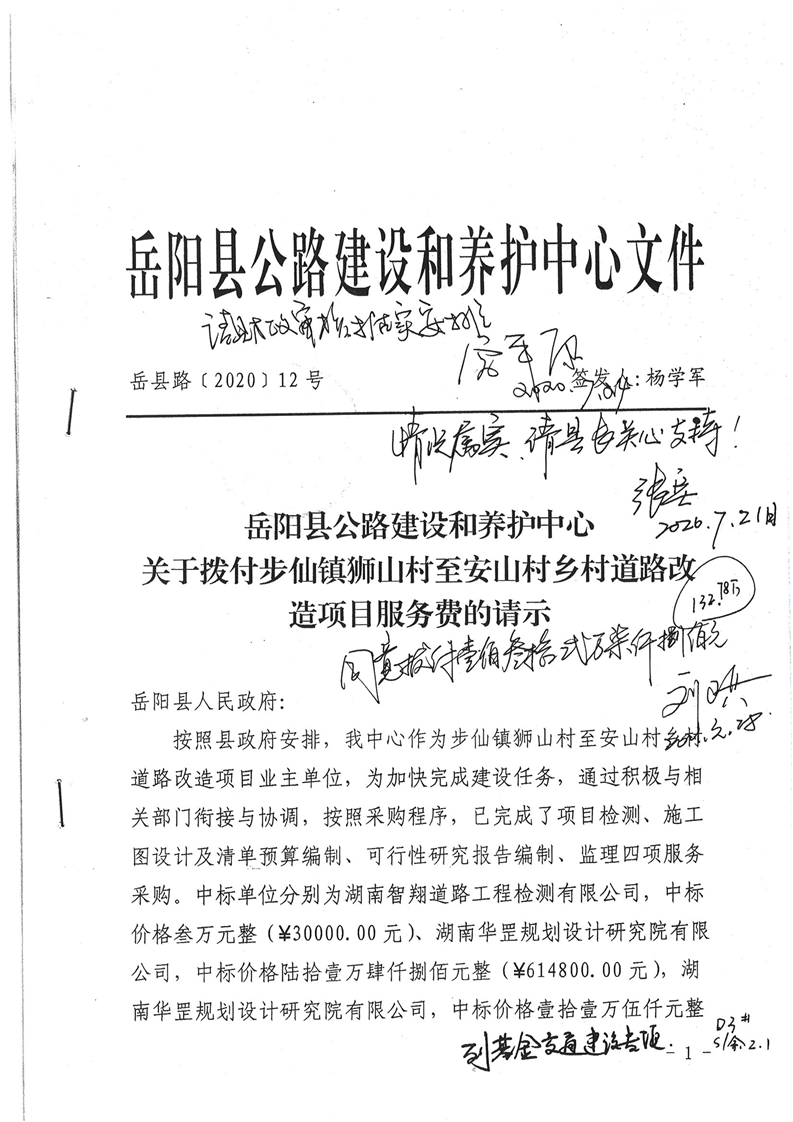 步仙鎮獅山村至安山村鄉村道路改造項目服務費公開公示