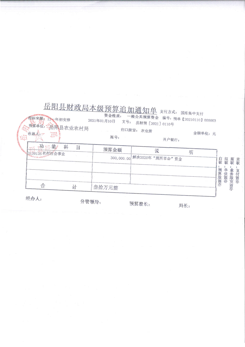2020年“廁所革命”資金公開公示