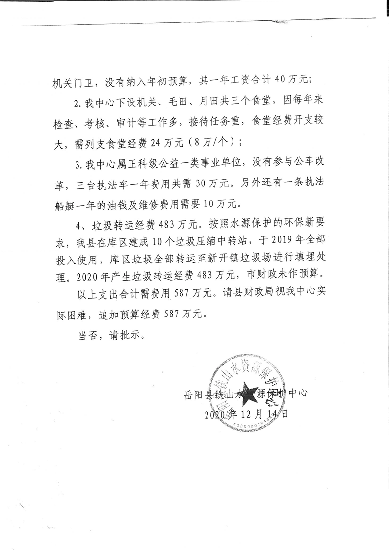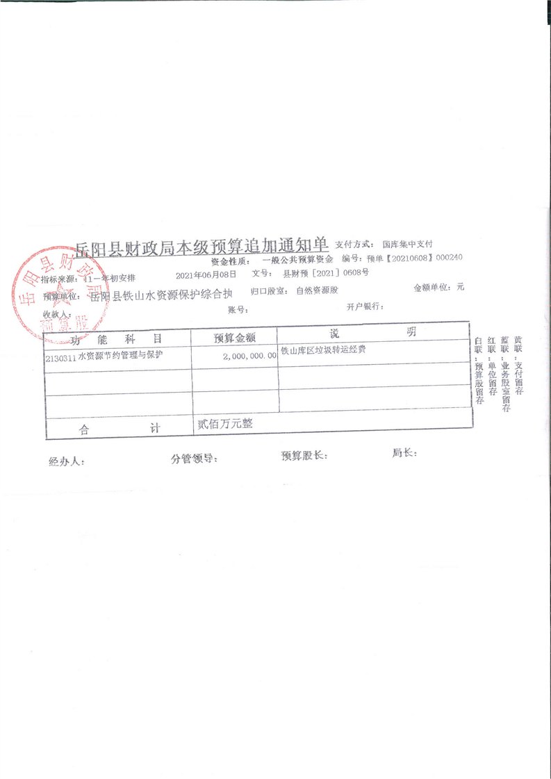 鐵山庫區垃圾轉運經費公開公示