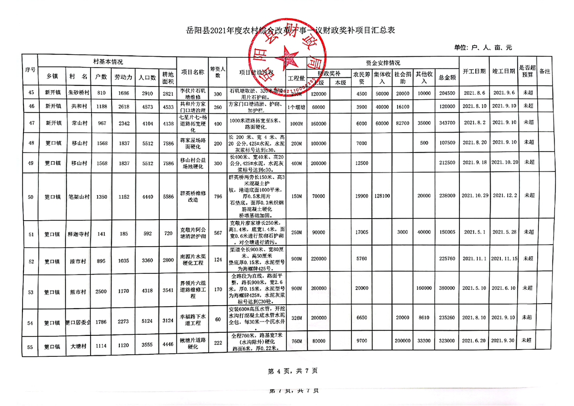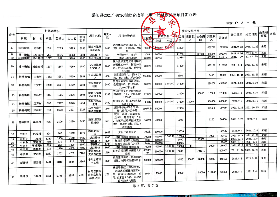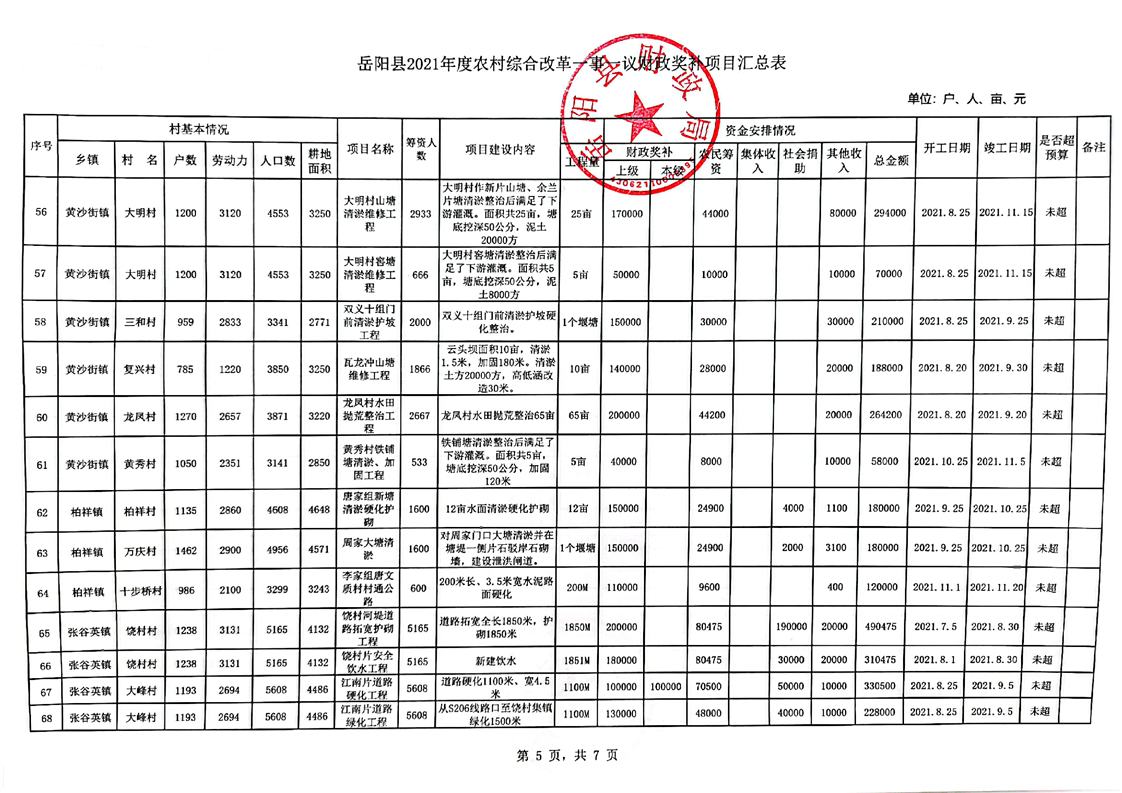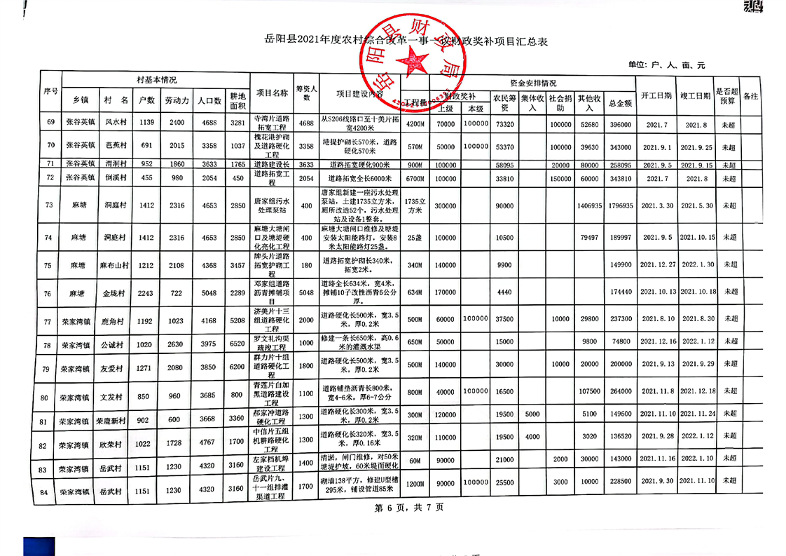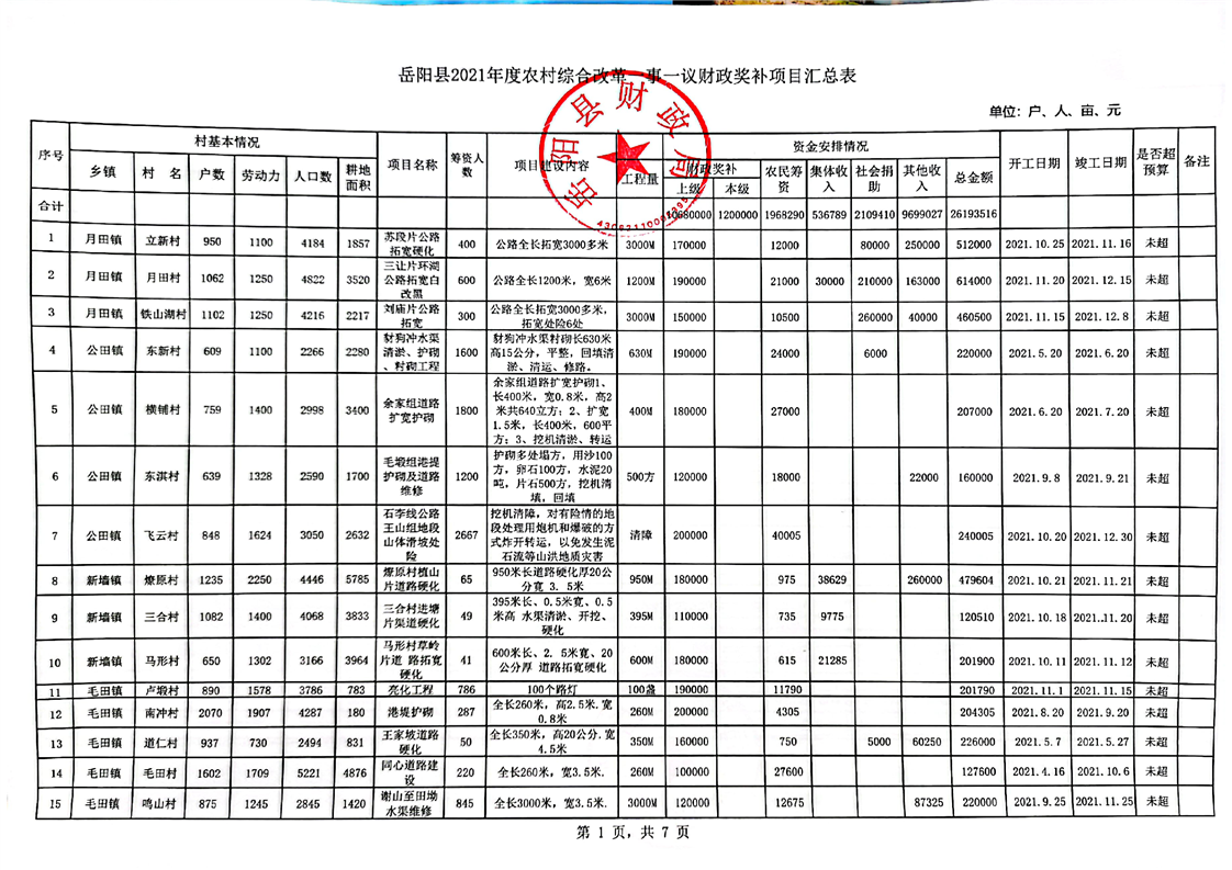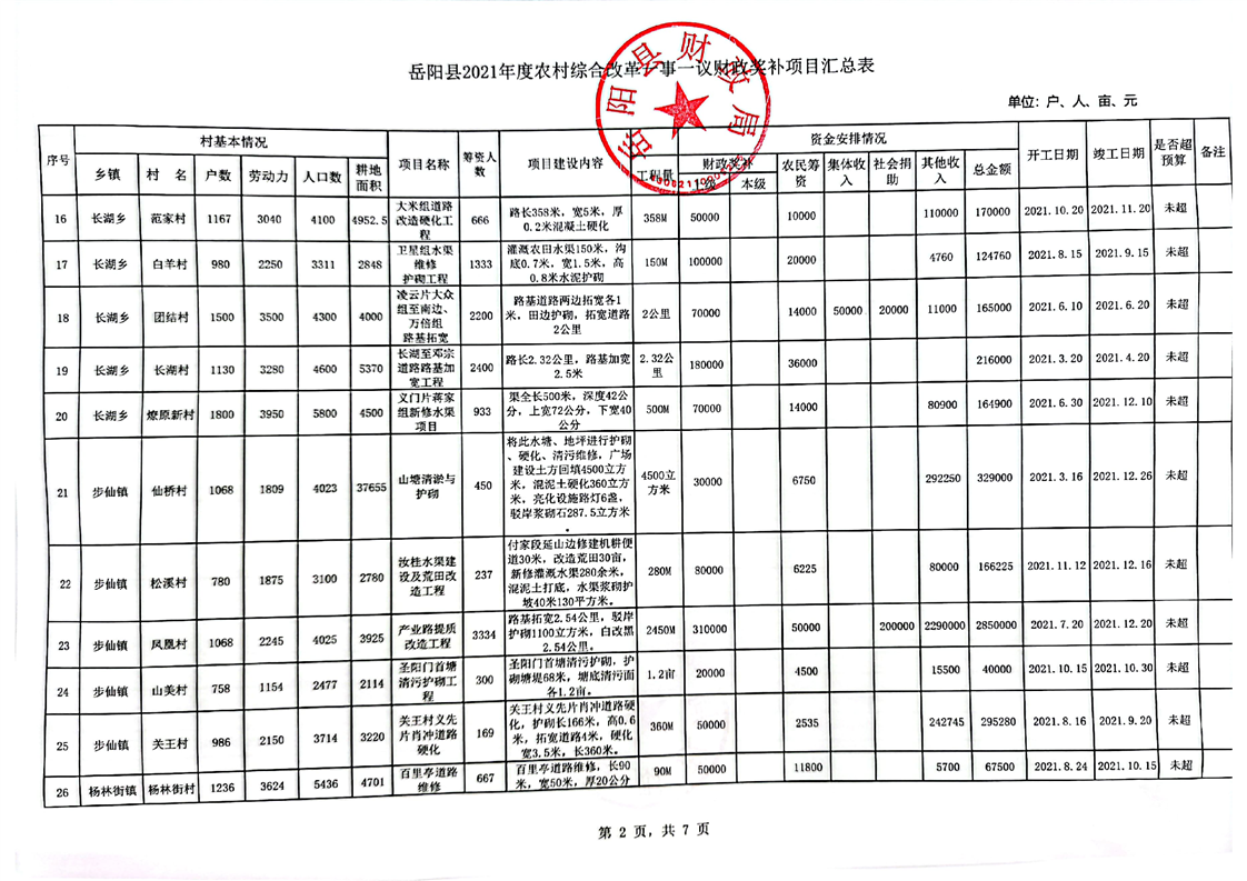 2021年嶽陽縣一事一議項目資料匯總表