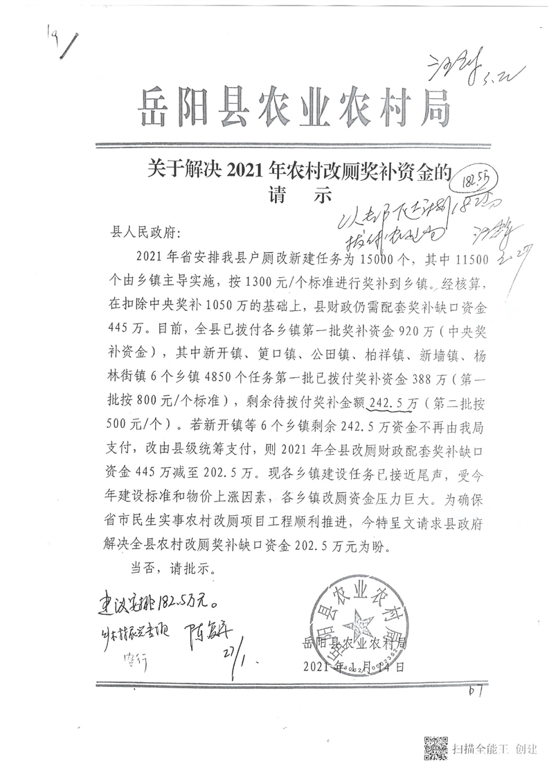 嶽陽縣本級財政鄉村振興專項(解決2021年農村改廁獎補資金)公開公示