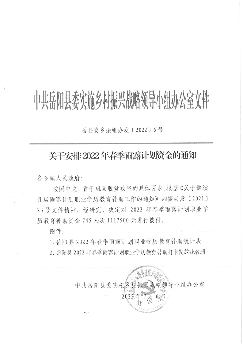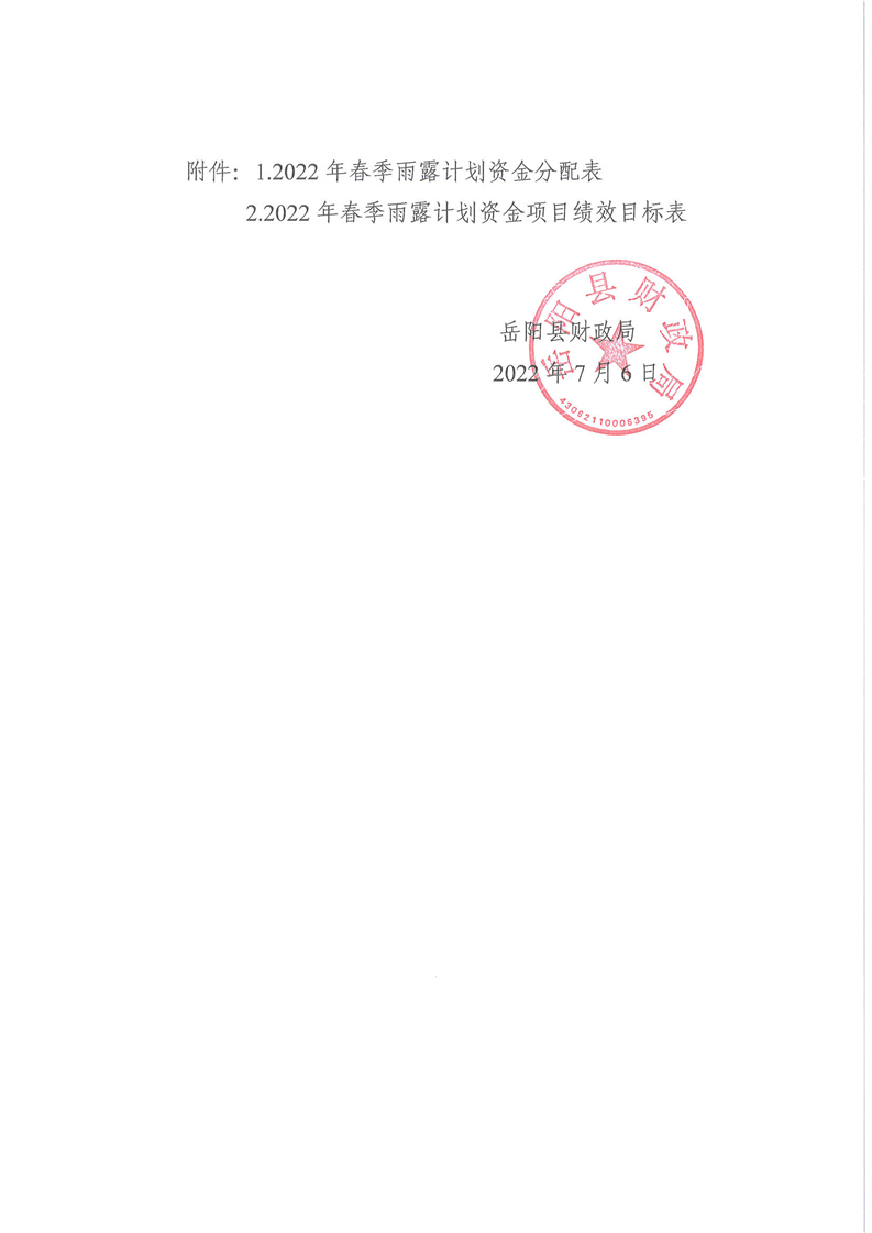 嶽陽縣財政局下達2022年春季雨露計劃資金及績效目標批複的公開公示