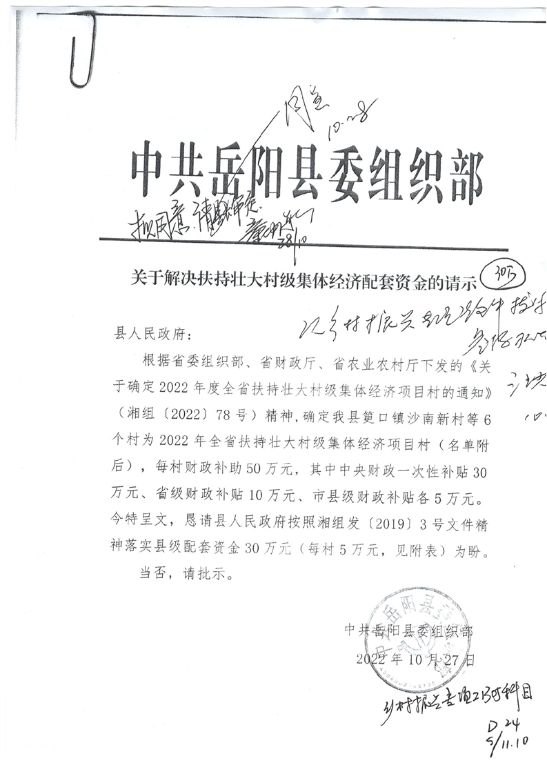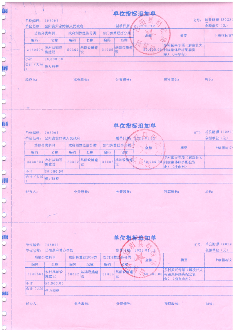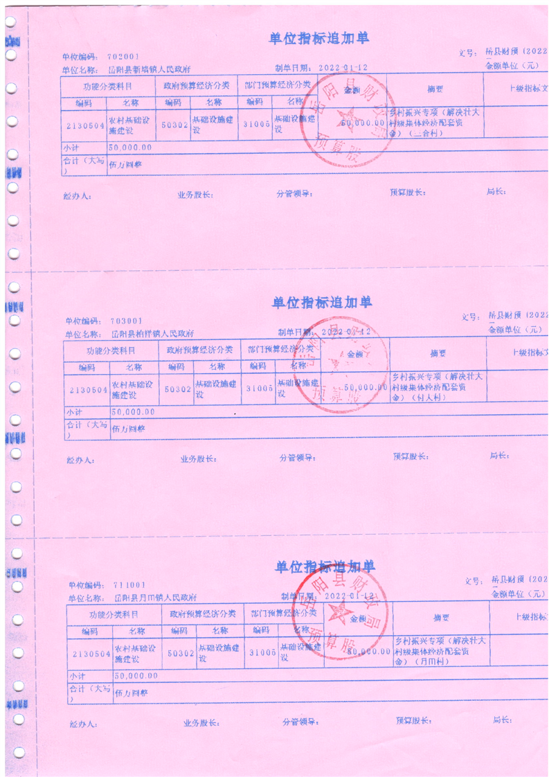 關於解決扶持壯大村級集體經濟配套資金的請示、資金撥付單