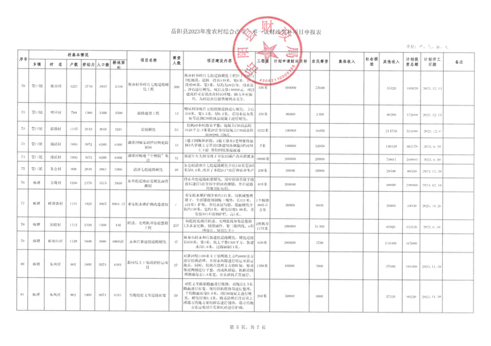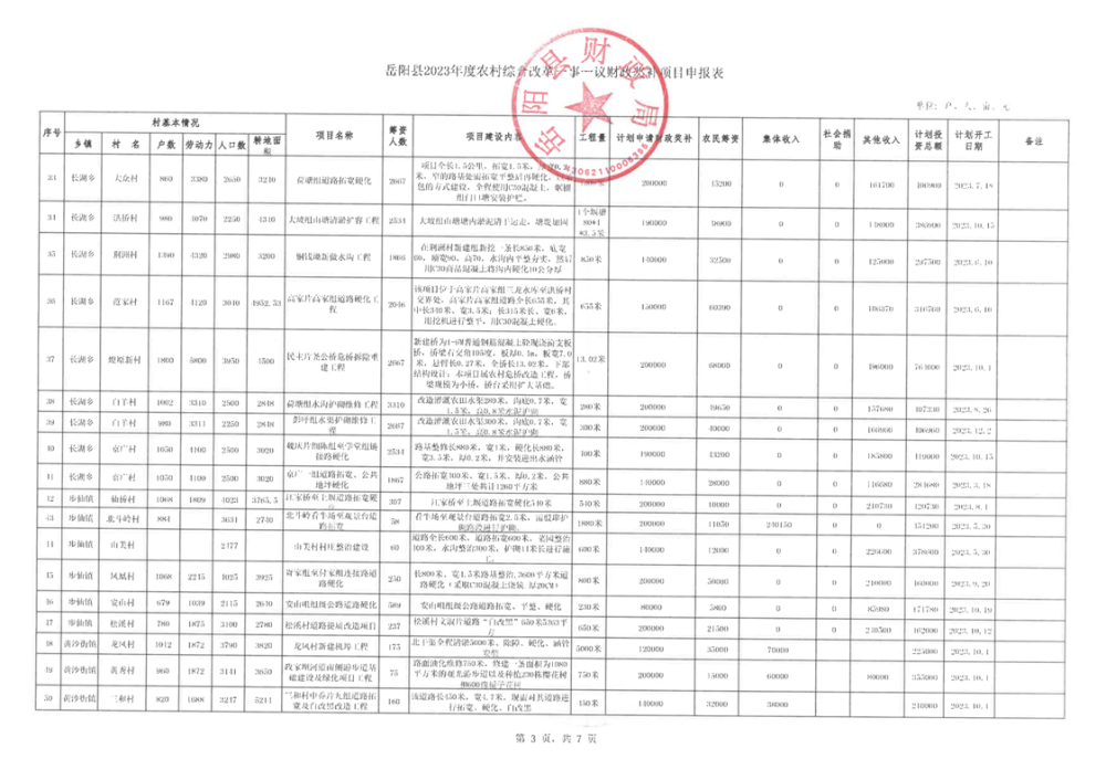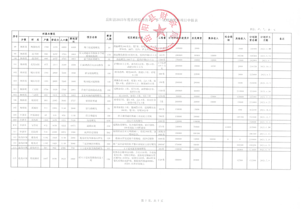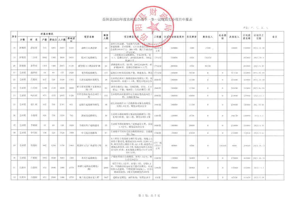 嶽陽縣2023年度農村綜合改革一事一議財政獎補項目申報表
