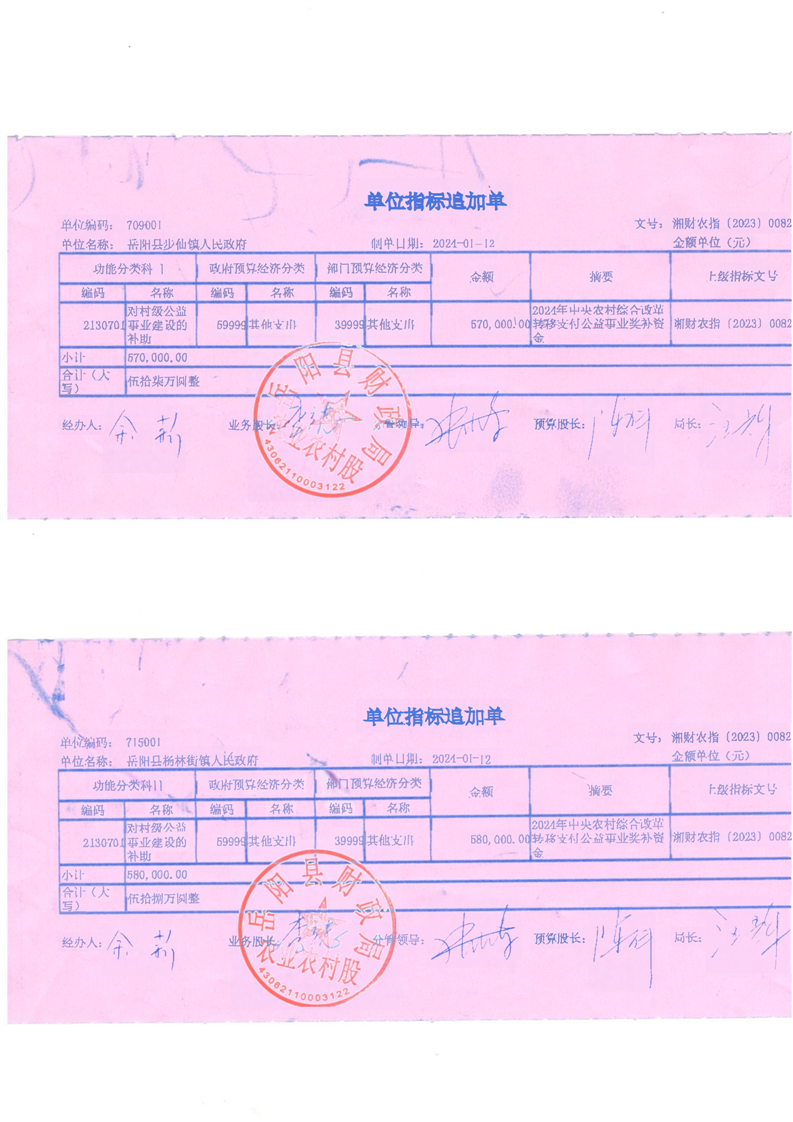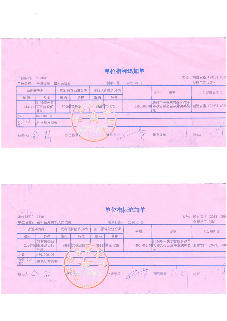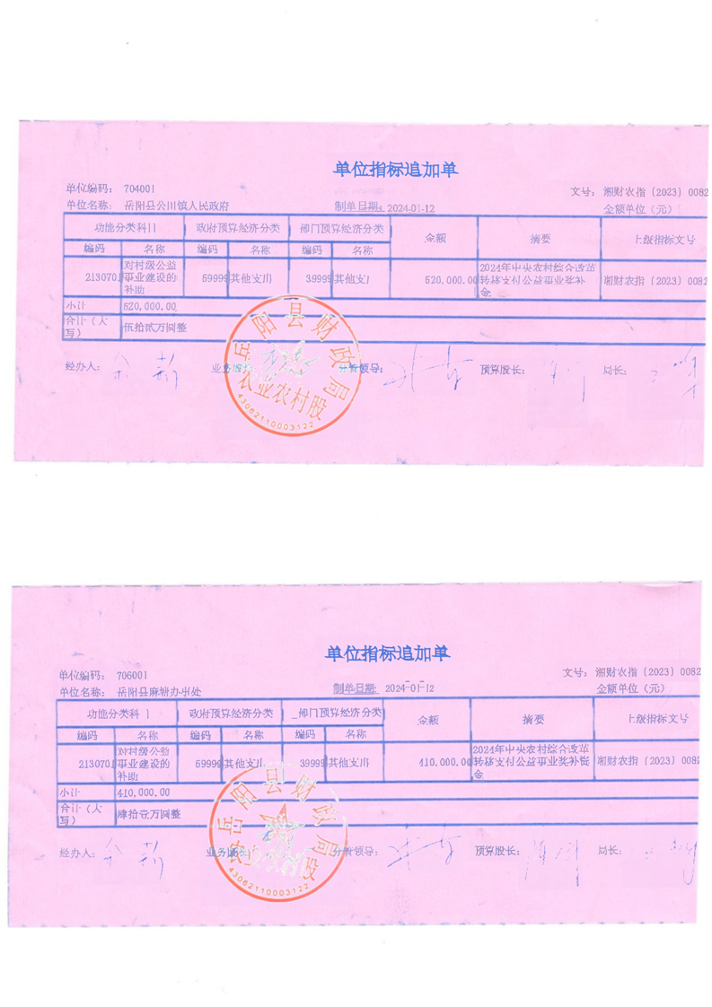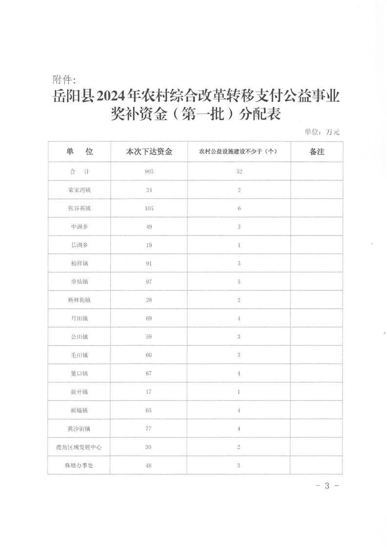 附件:嶽陽縣2024年農村綜合改革轉移支付公益事業獎補資金(第一批)分配表