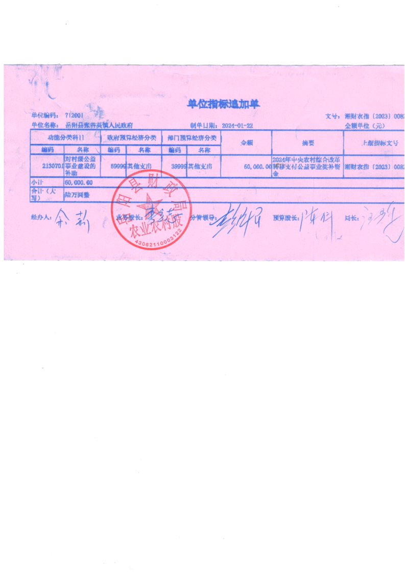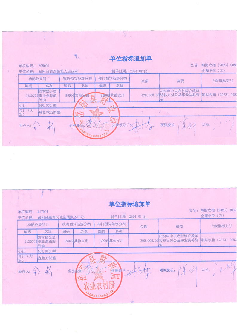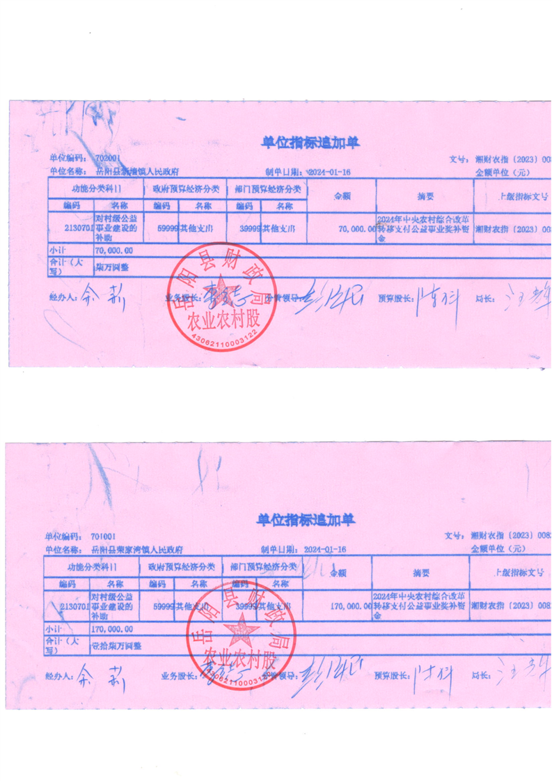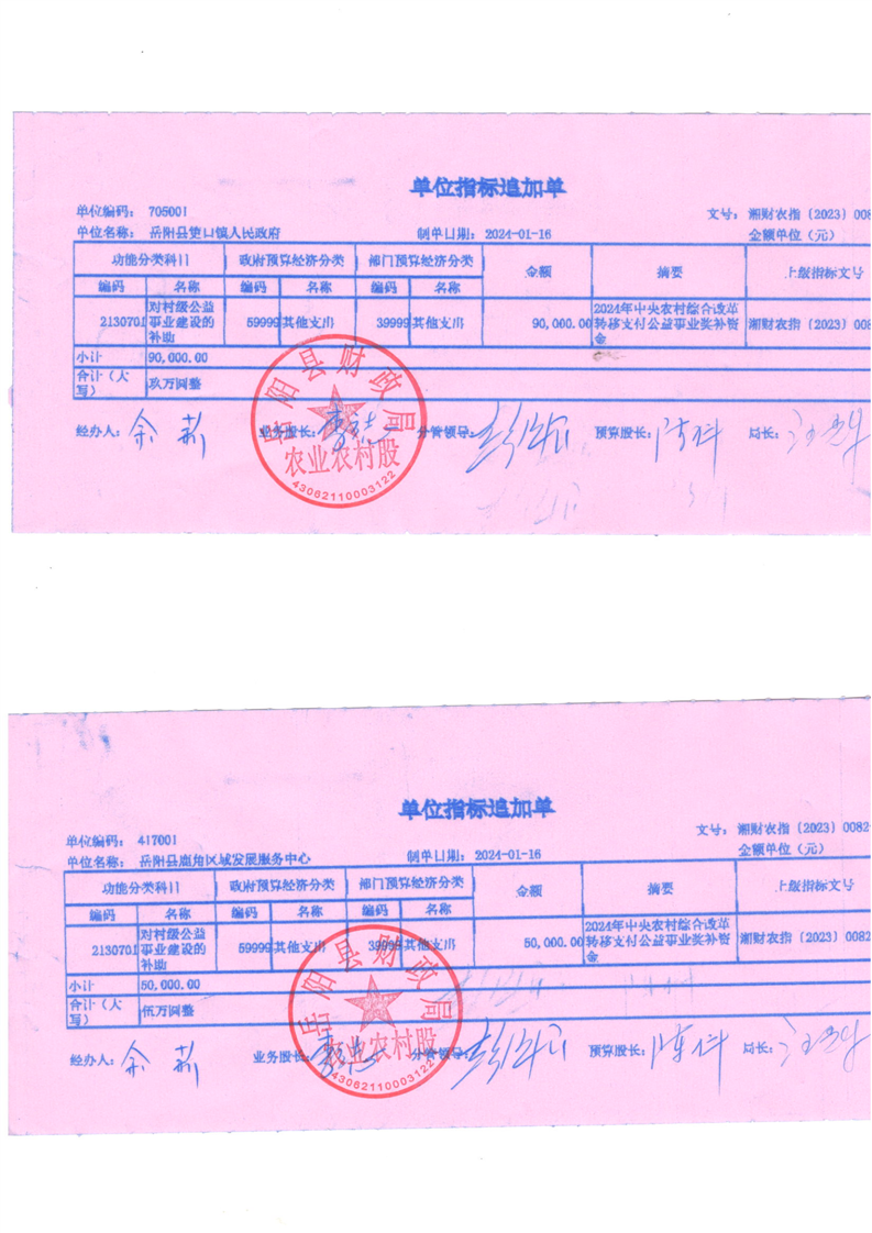 為支持做好2024年農村綜合改革轉移支付工作,經研究,現下達你鄉(鎮)2024年農村綜合改革轉移支付資金905萬元,該指標列2024年支出功能科目“2130701對村級公益事業建設的補助”,支出經濟科目分類列“599其他支出”。
