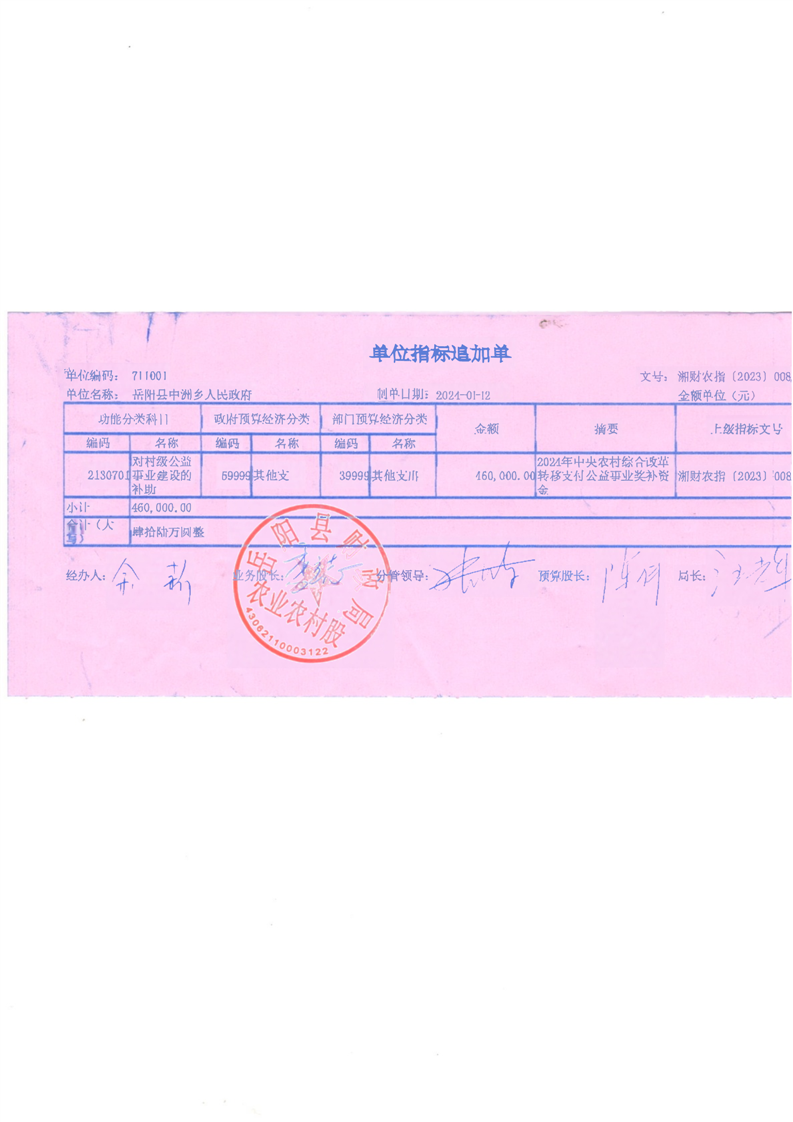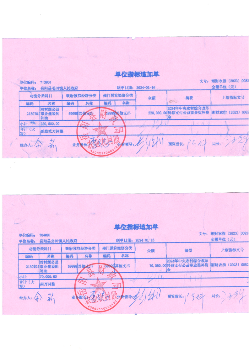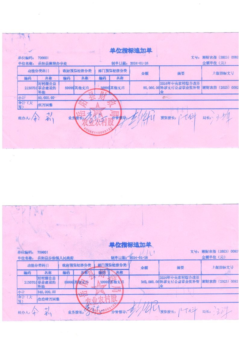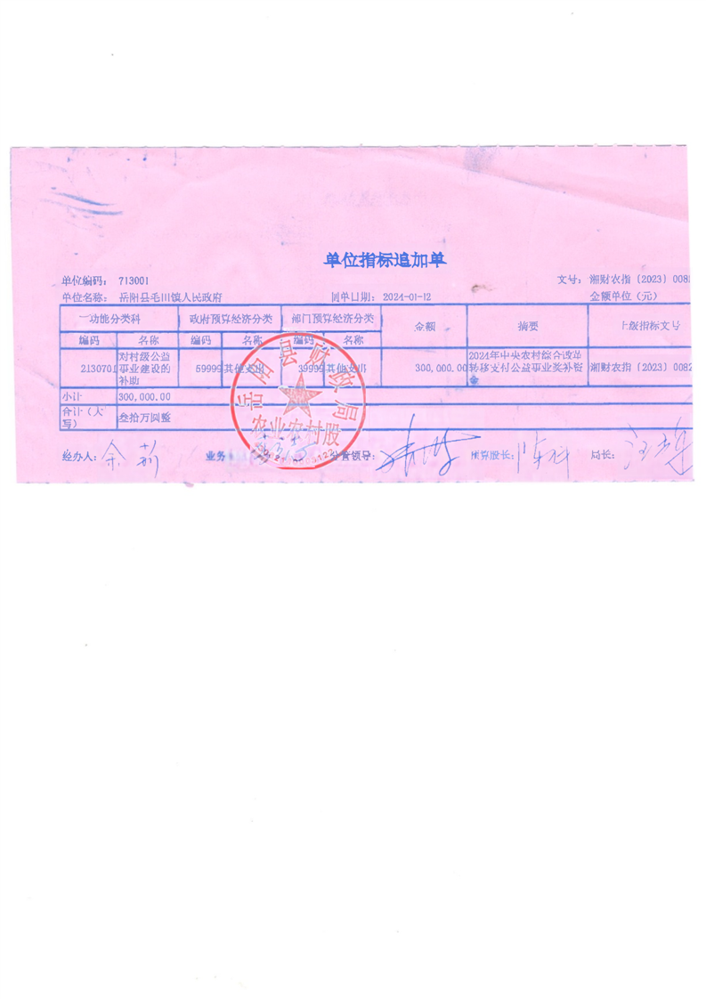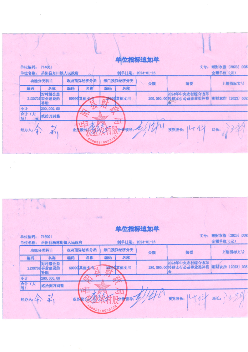 為支持做好2024年農村綜合改革轉移支付工作,經研究,現下達你鄉(鎮)2024年農村綜合改革轉移支付資金905萬元,該指標列2024年支出功能科目“2130701對村級公益事業建設的補助”,支出經濟科目分類列“599其他支出”。