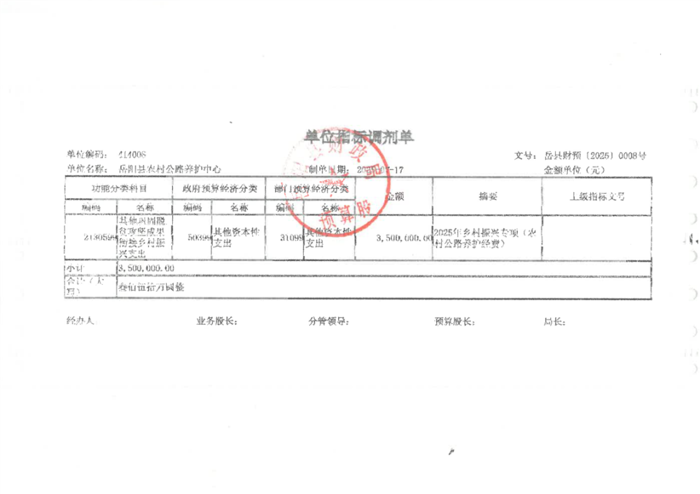 2025年農村公路養護資金