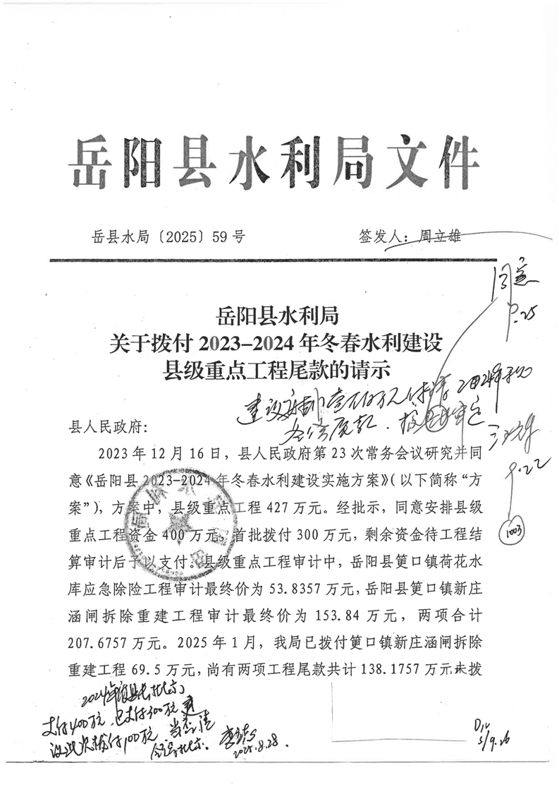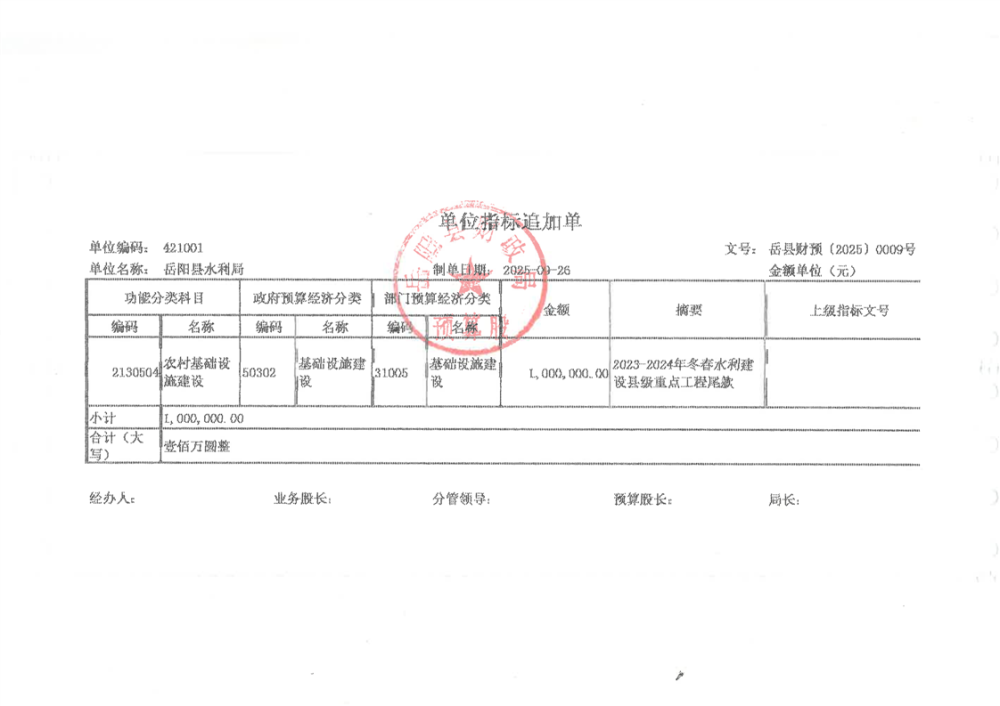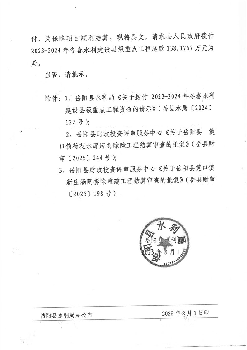 冬春水利建設縣級重點工程資金
