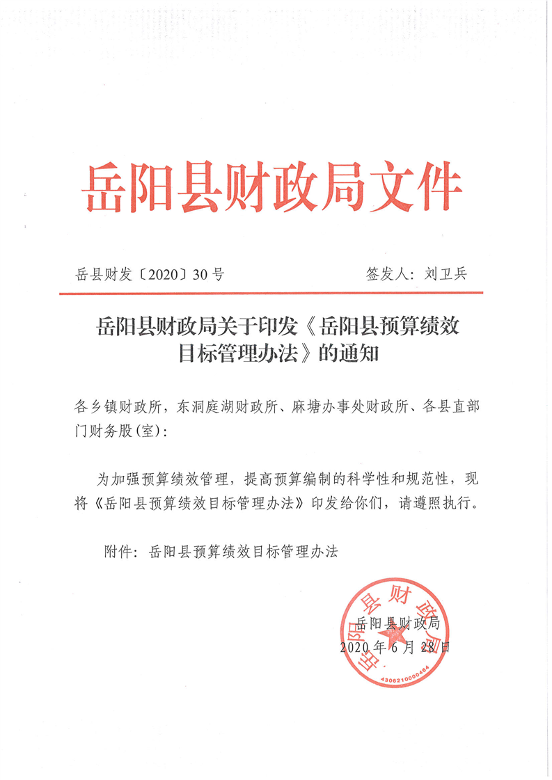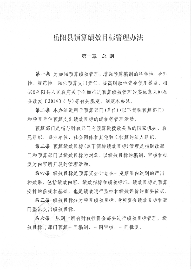 嶽陽縣財政局關於印發《嶽陽縣預算績效目標管理辦法》的通知 (圖)