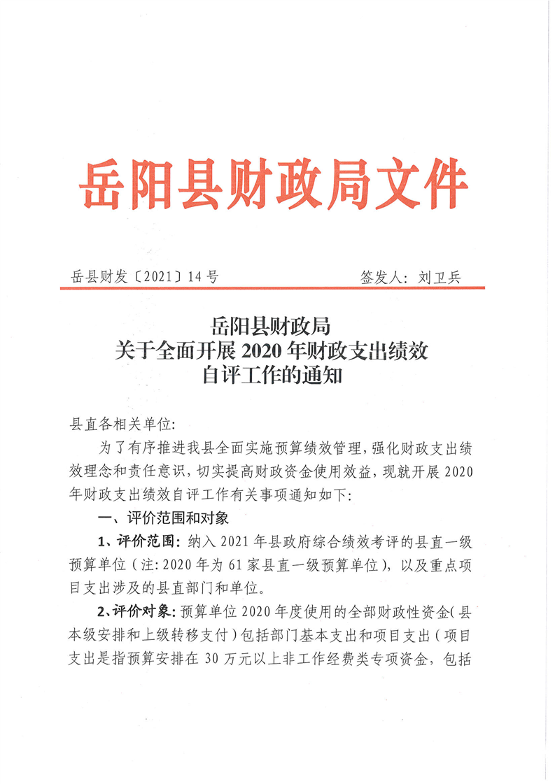 關於全麵開展2020年財政支出績效自評工作的通知 (圖)