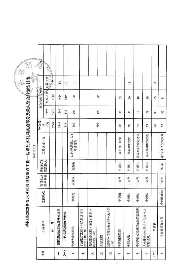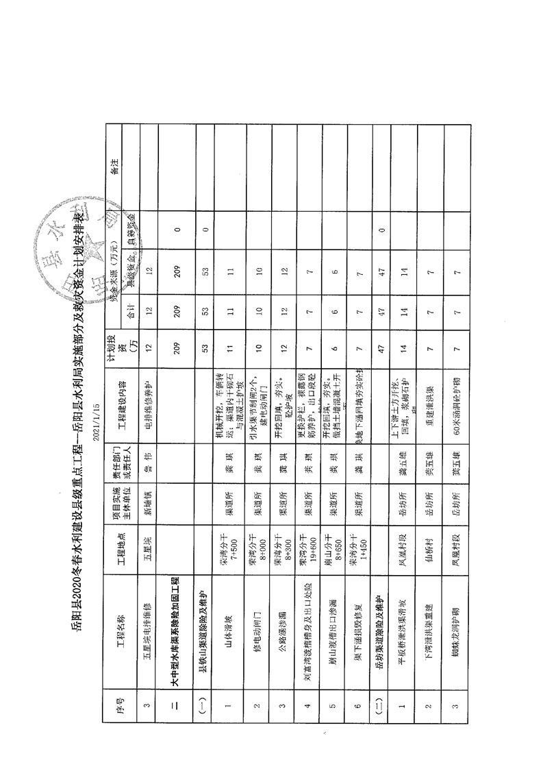 2021年度縣級財政銜接推進鄉村振興冬春水利建設重點工程建設資金