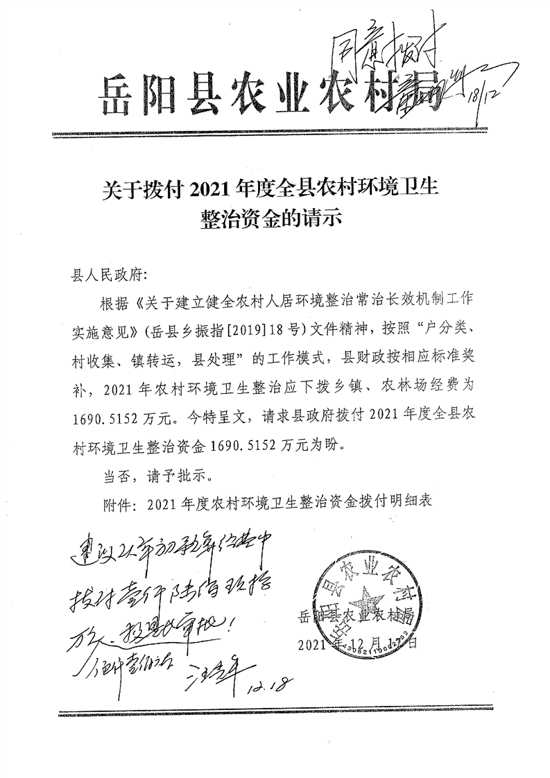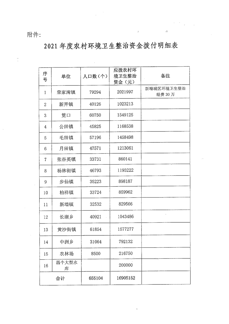 2021年度縣級財政銜接推進鄉村振興全縣農村環境衛生整治資金公開公示