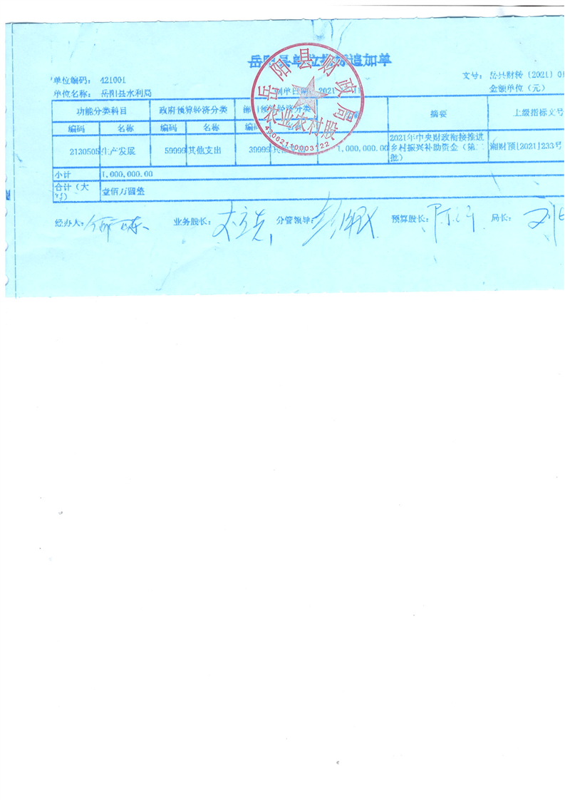 嶽陽縣財政局下達2021年中央財政銜接推進鄉村振興補助資金(第二批)公開公示