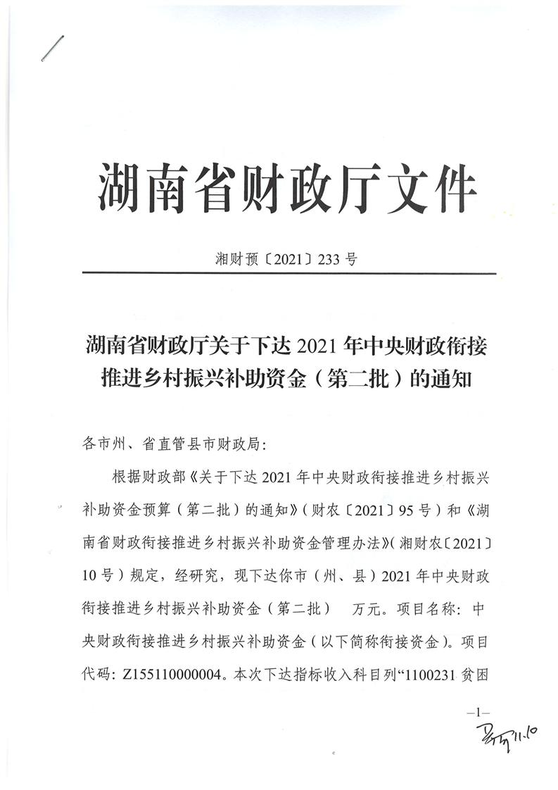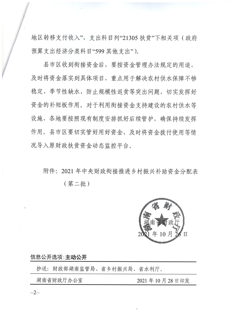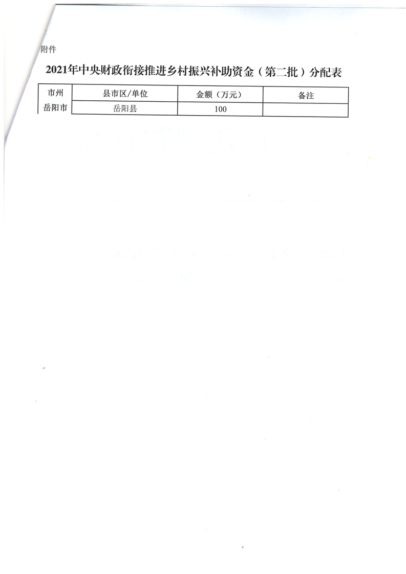 湖南省財政廳關於下達2021年中央財政銜接推進鄉村振興補助資金(第二批)公開公示