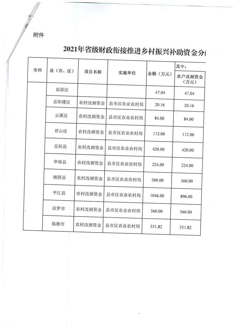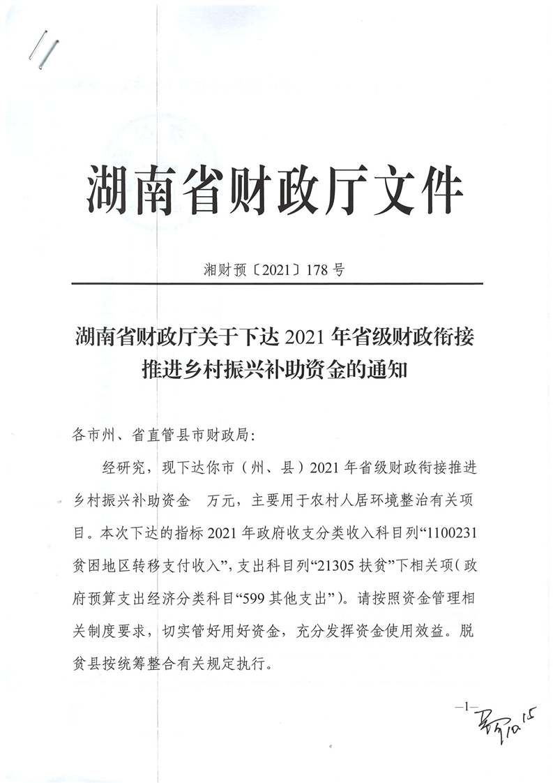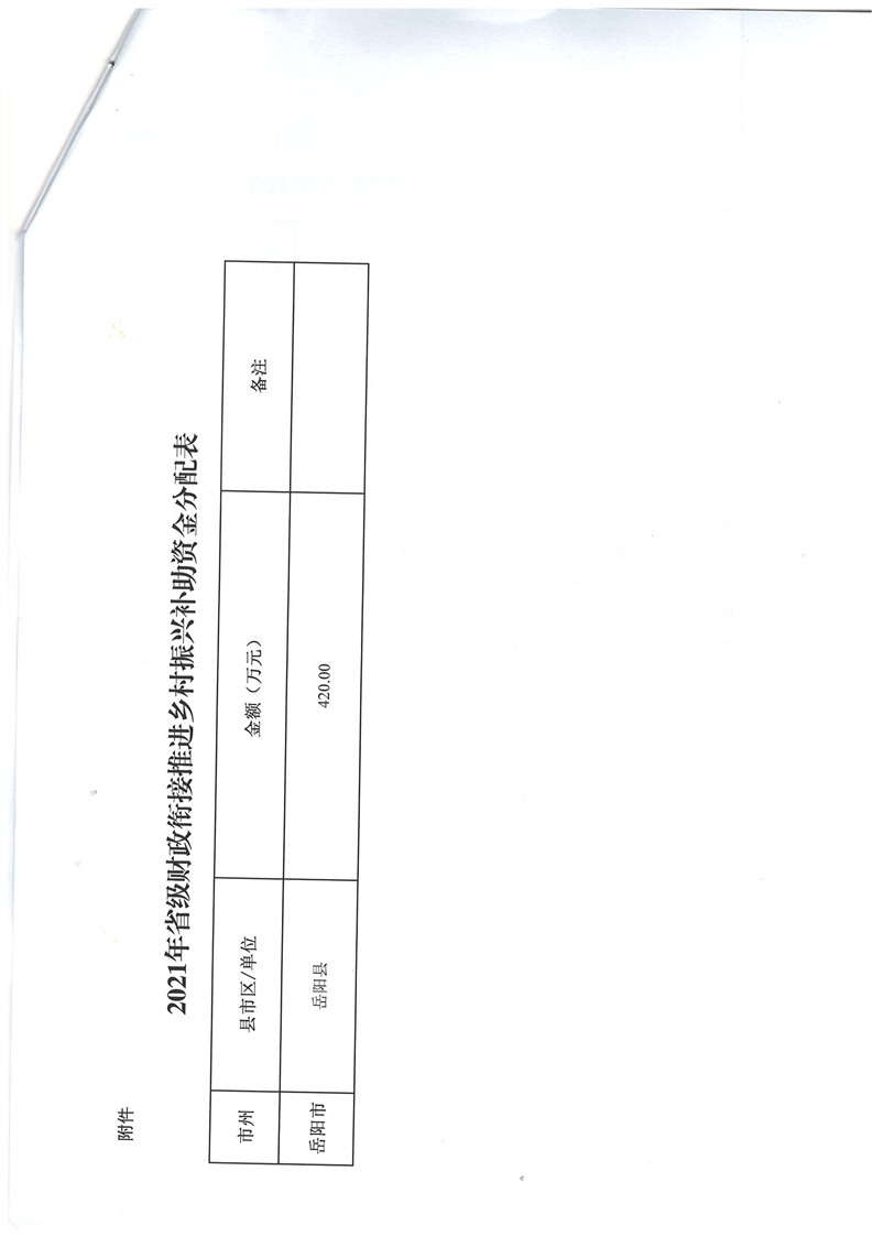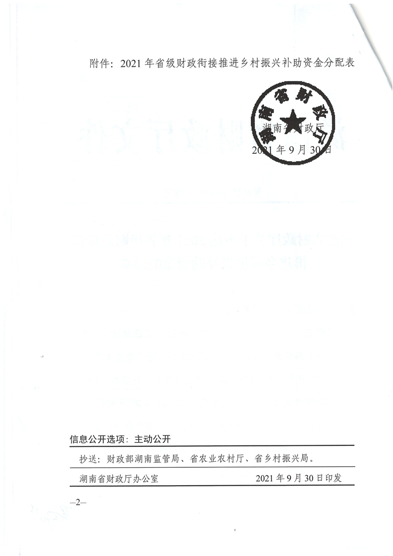 湖南省財政廳關於下達2021年省級財政銜接推進鄉村振興補助資金公開公示