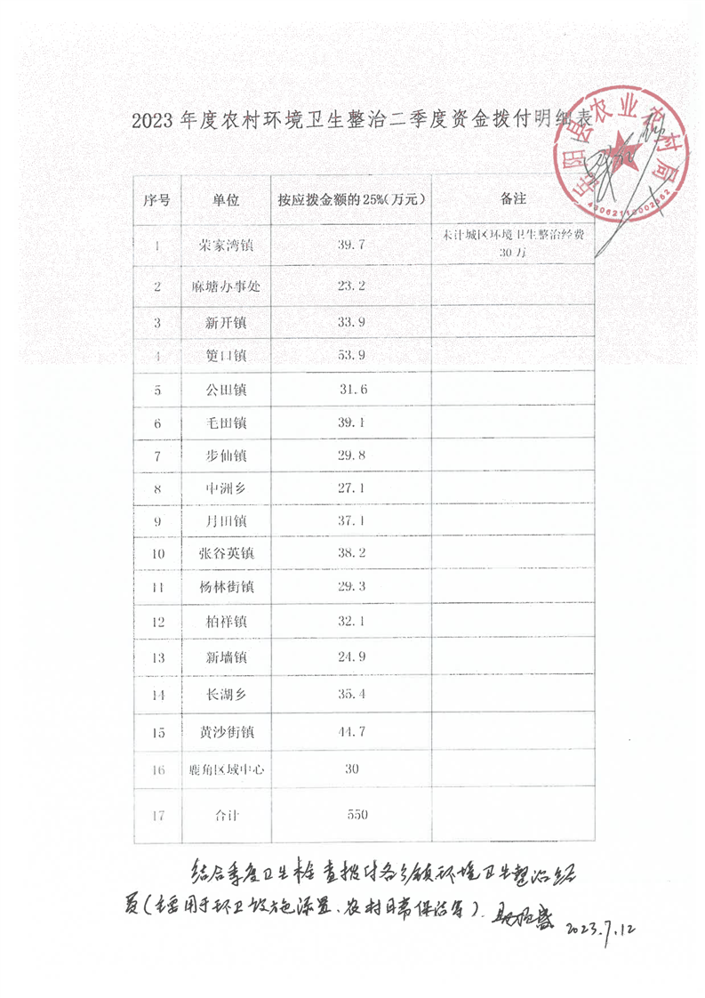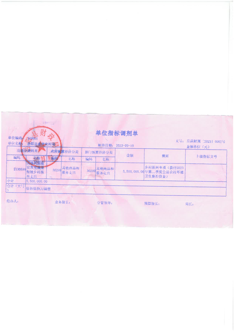 嶽陽縣本級財政鄉村振興專項(2023年第二季度全縣農村環境衛生整治資金)
