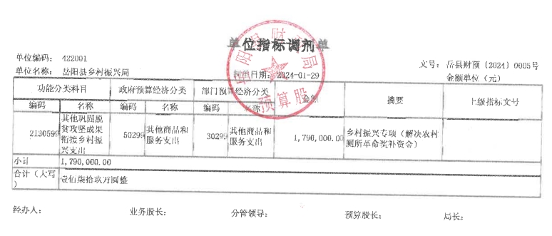 嶽陽縣本級財政鄉村振興專項(解決農村廁所革命獎補資金)