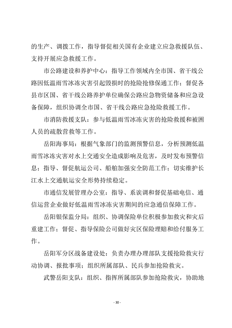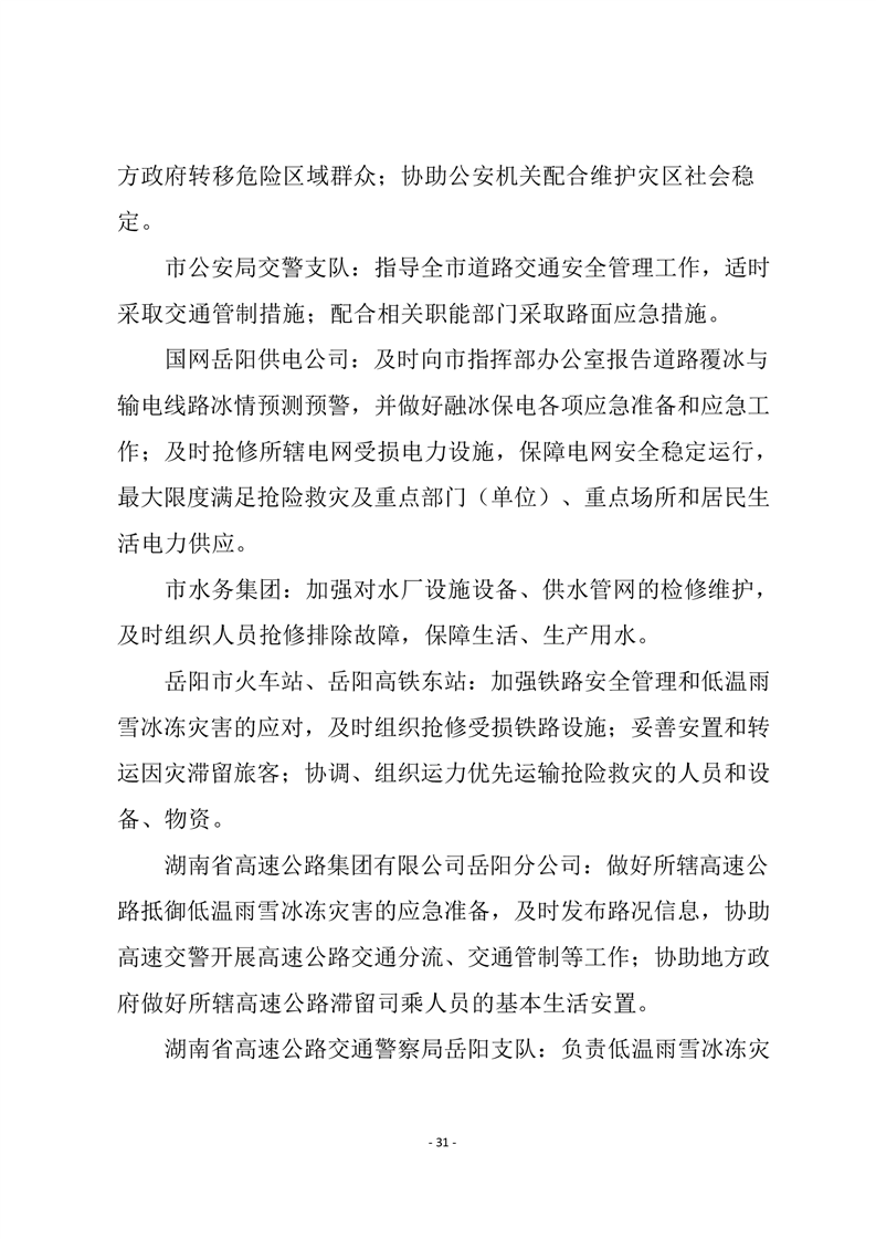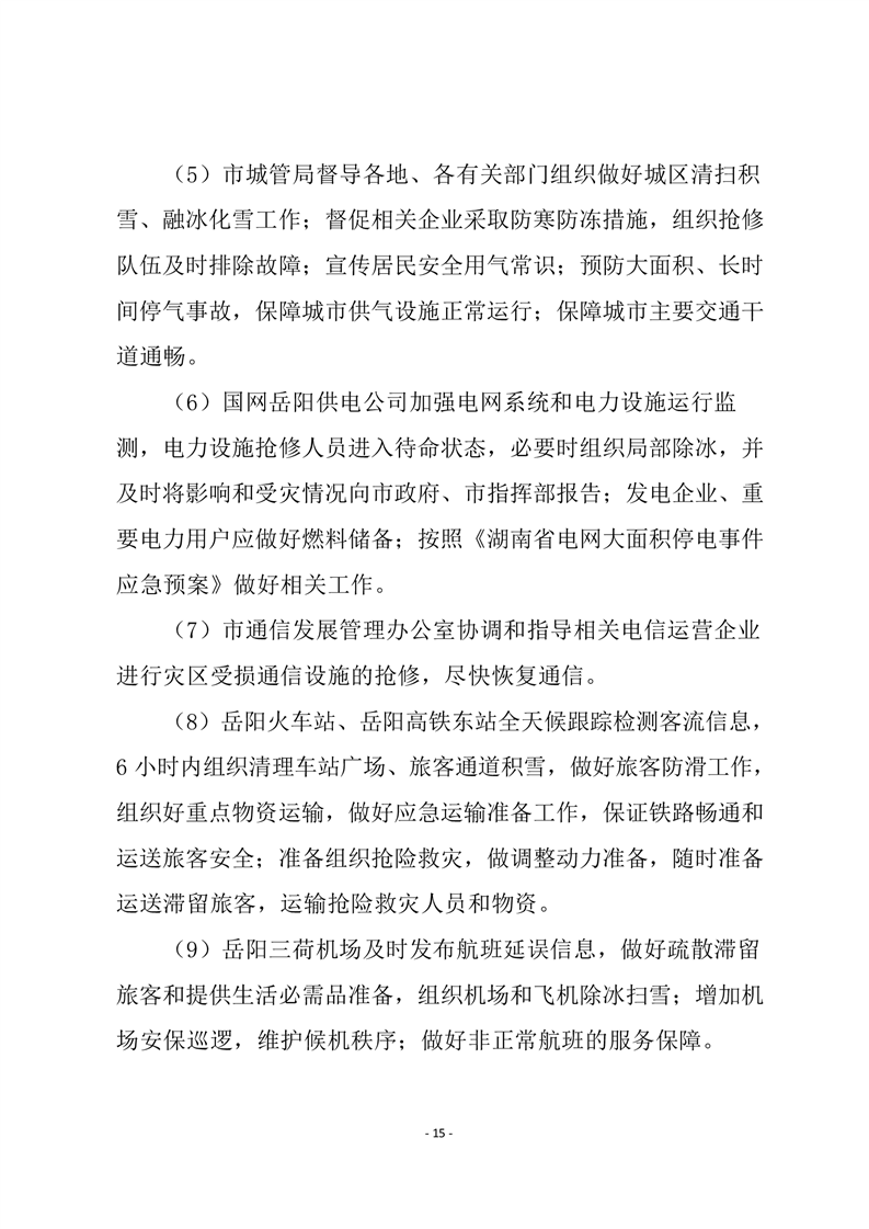 嶽陽市低溫雨雪冰凍災害應急預案(試行))
