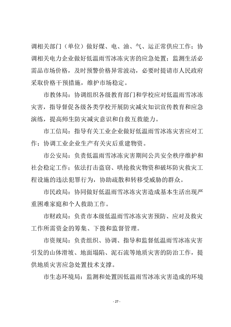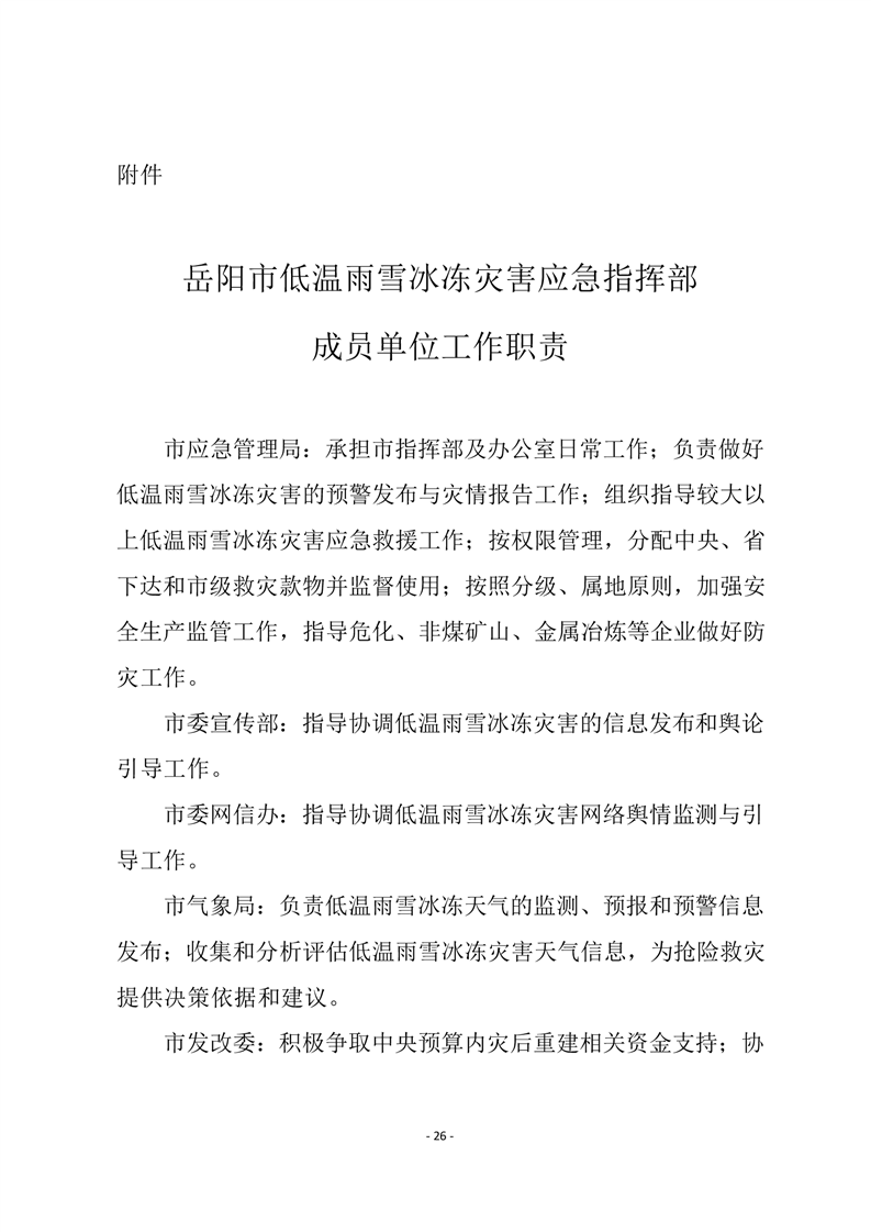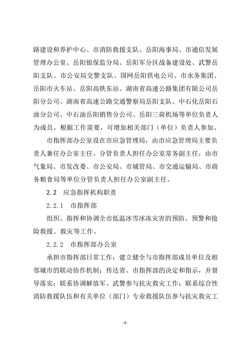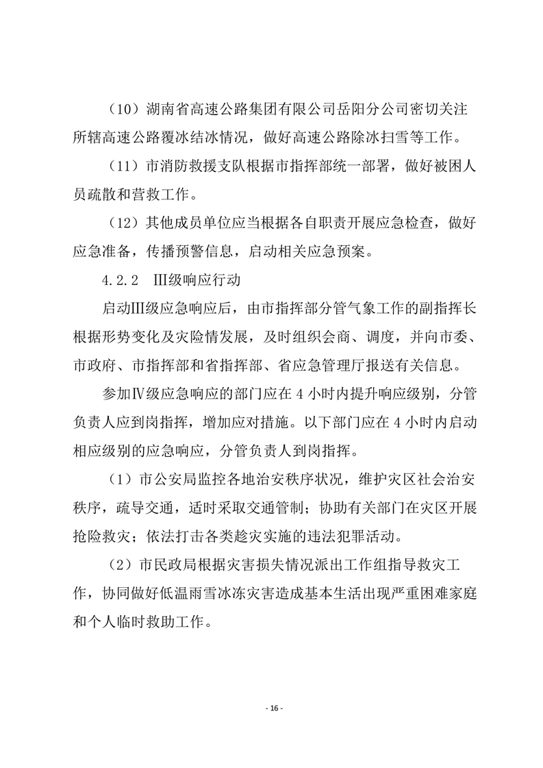嶽陽市低溫雨雪冰凍災害應急預案(試行))