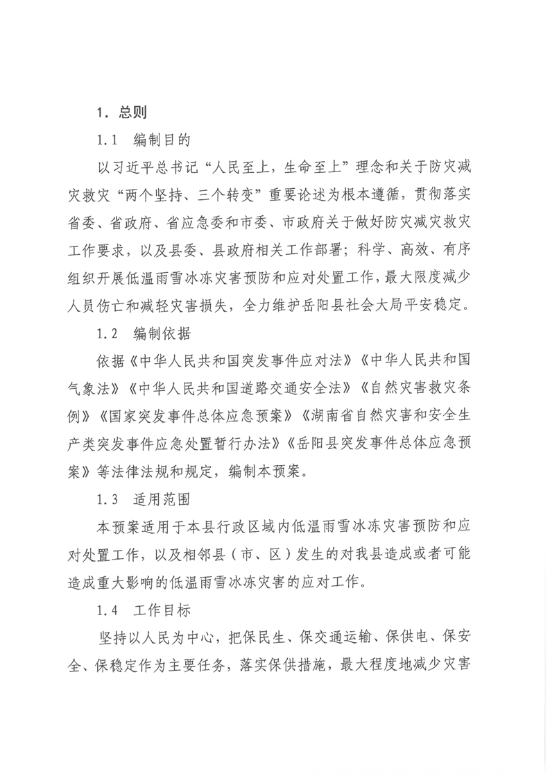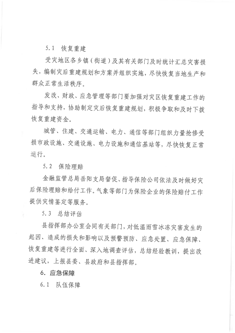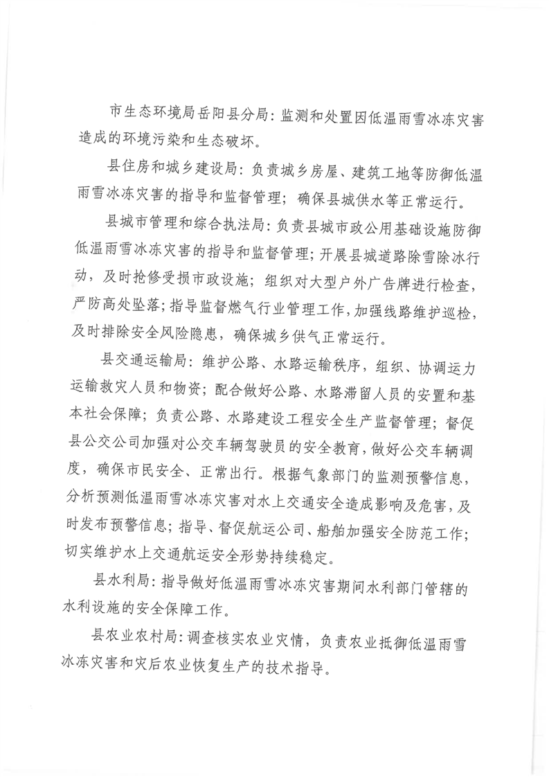 嶽陽縣低溫雨雪冰凍災害應急預案